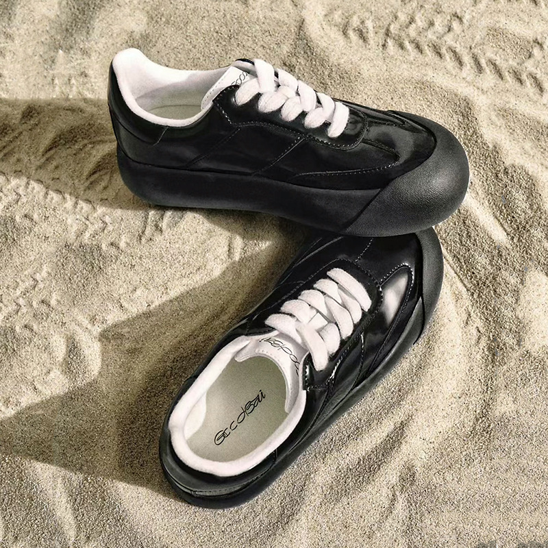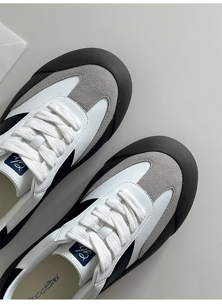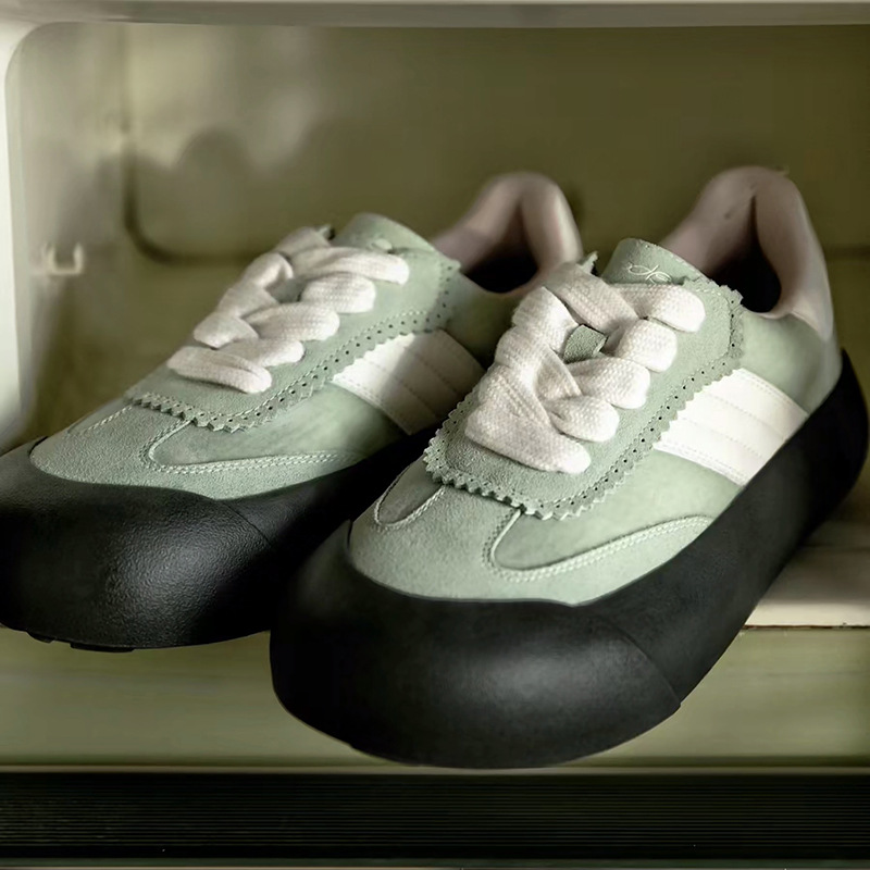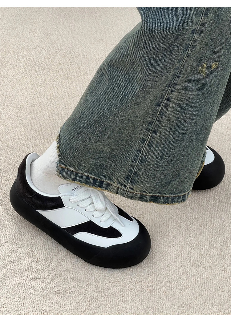 새로운 Bai Jingting 같은 스타일 신발 여성 로우 탑 두꺼운 밑창 캐주얼 통통한 독일 훈련 신발 흑백 팬더 신발