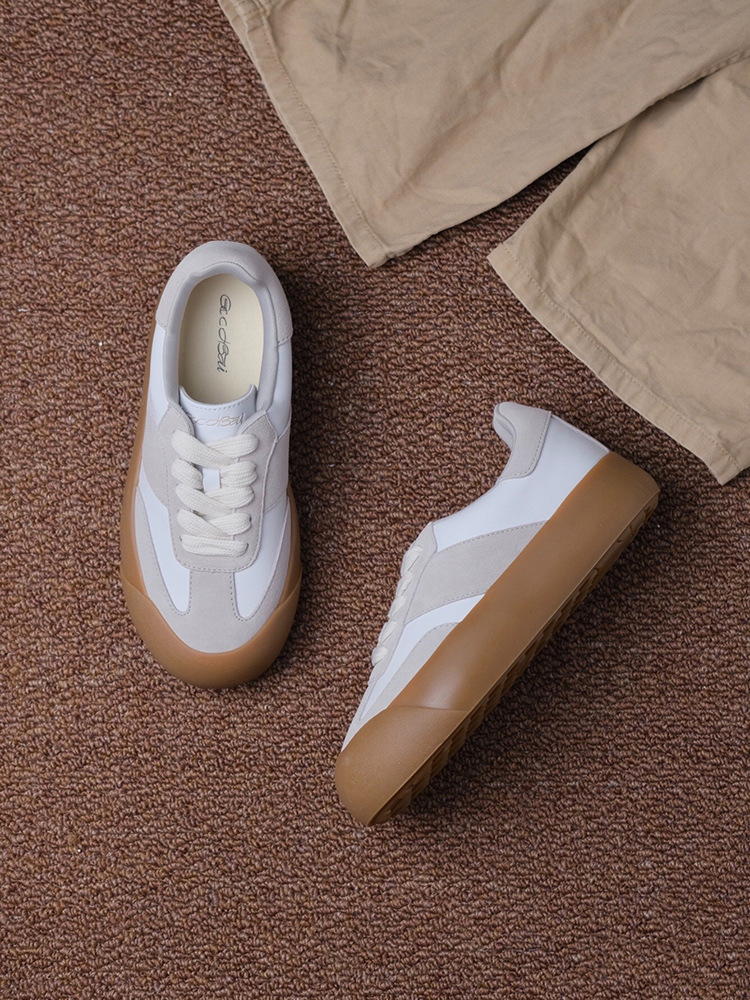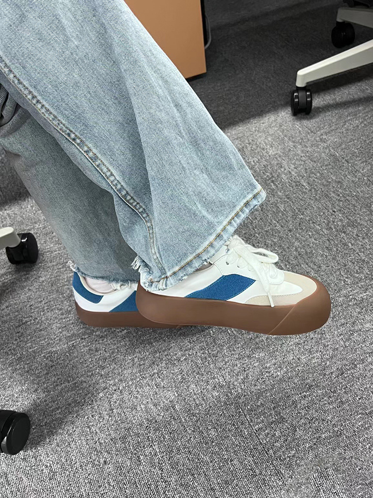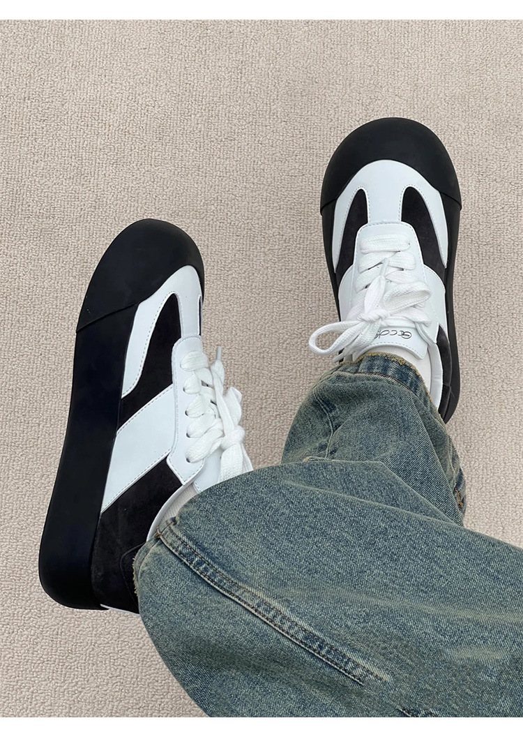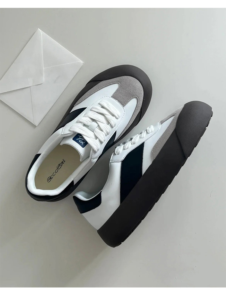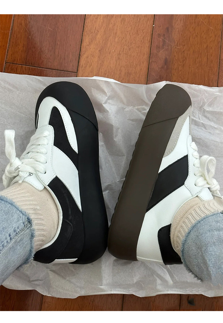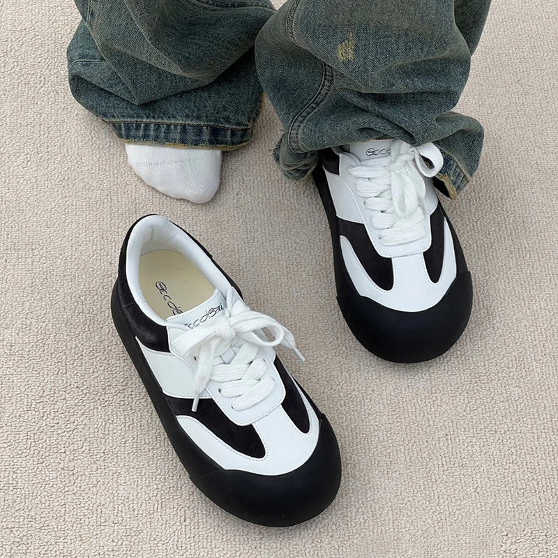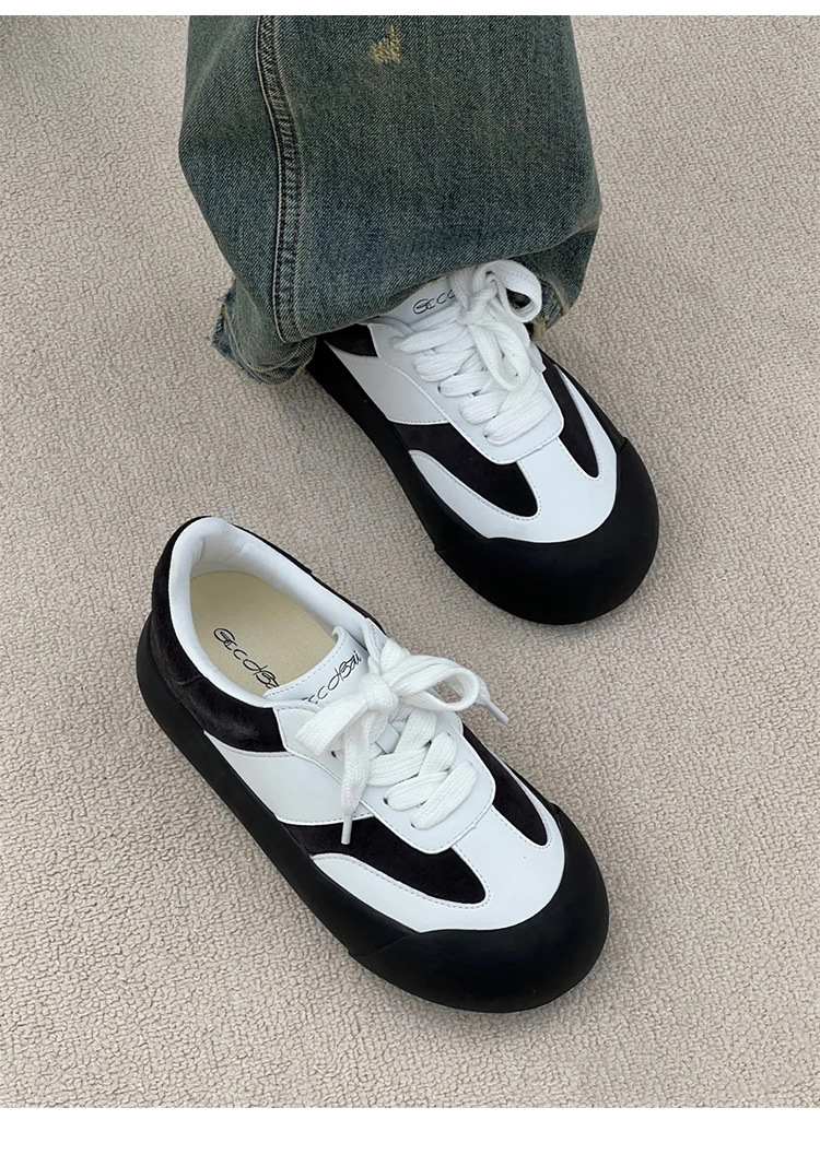 새로운 Bai Jingting 같은 스타일 신발 여성 로우 탑 두꺼운 밑창 캐주얼 통통한 독일 훈련 신발 흑백 팬더 신발스토어 가기