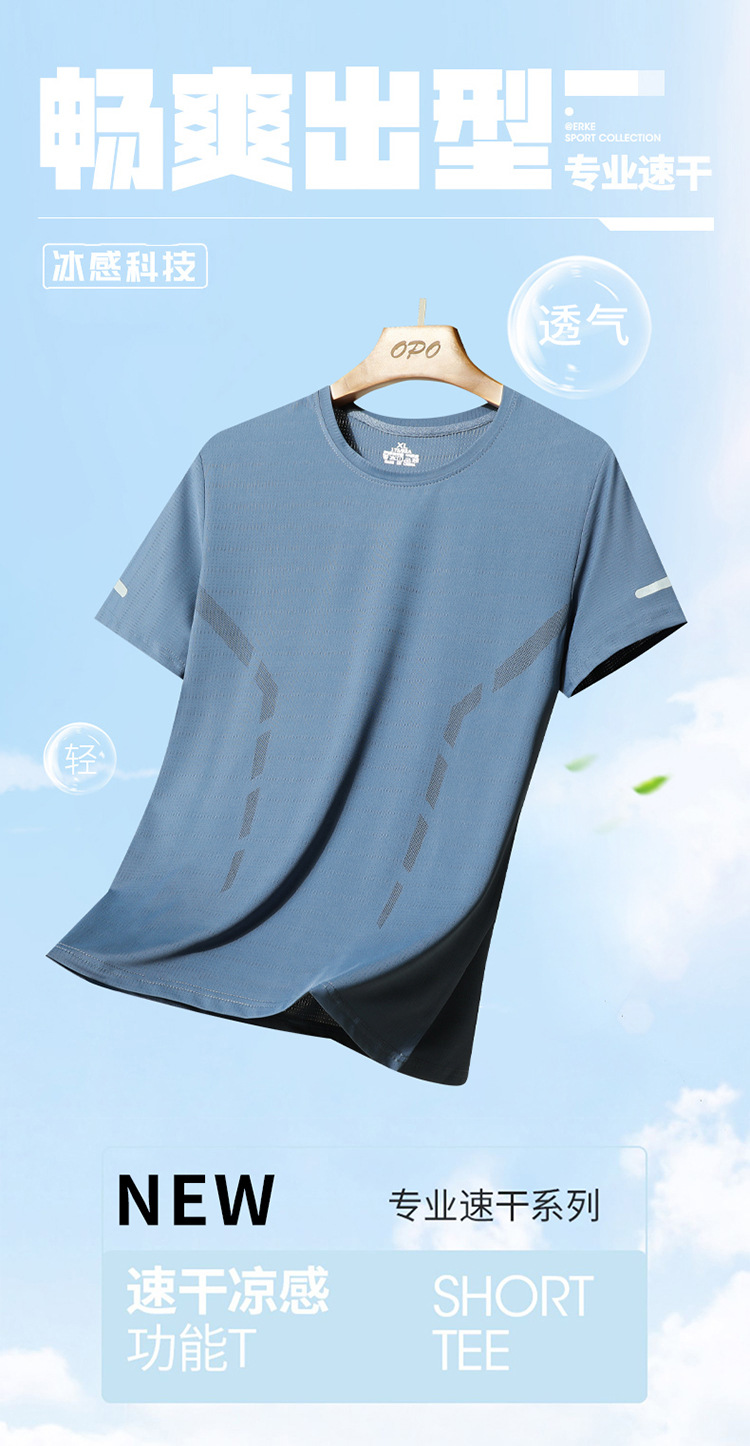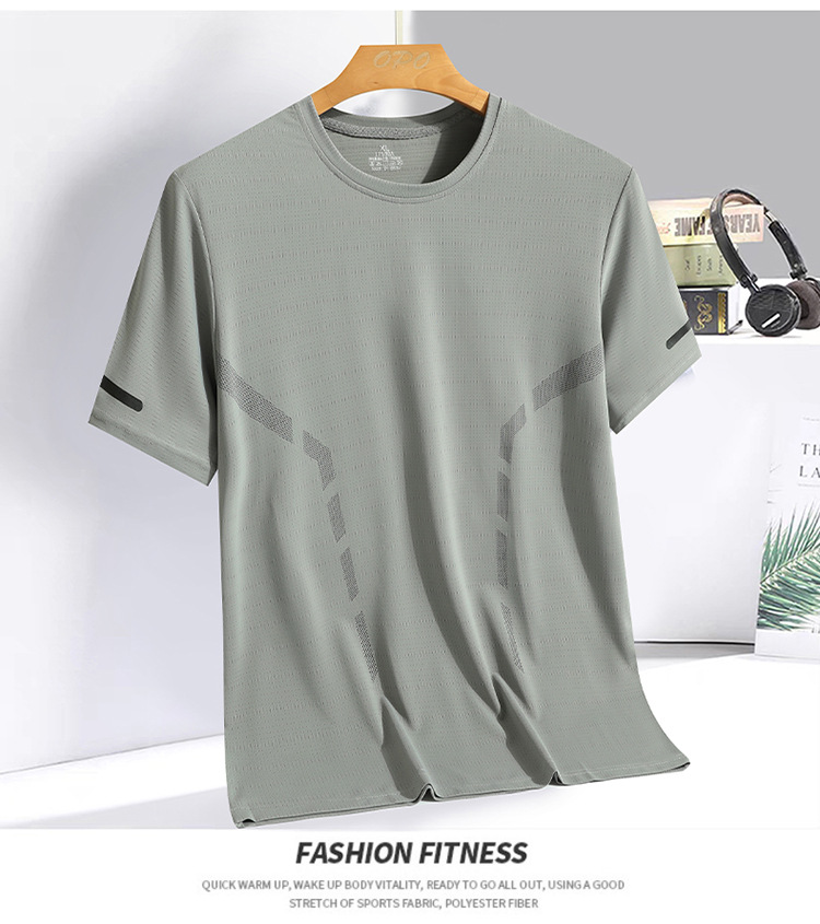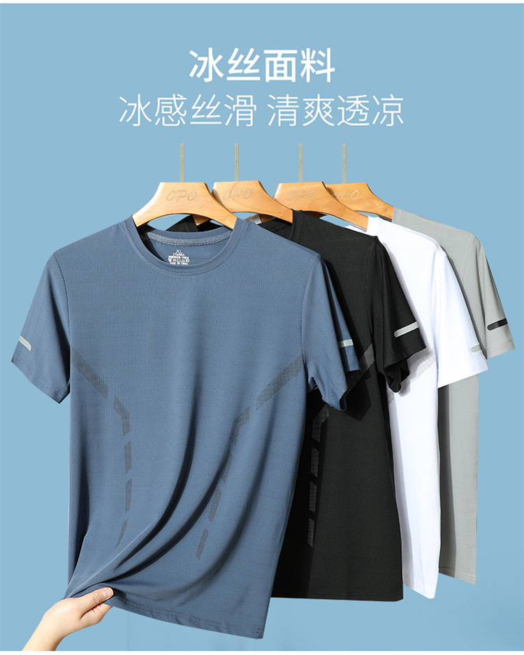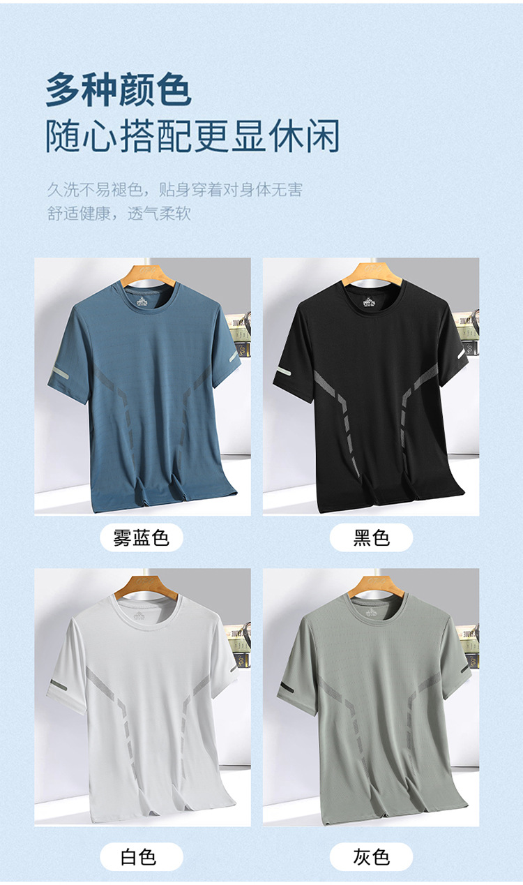 여름 아이스 실크 남성용 야외 반팔 티셔츠 얇은 통기성 에어컨 아이스 반팔 티셔츠 남성용 속건 스포츠 탑스토어 가기