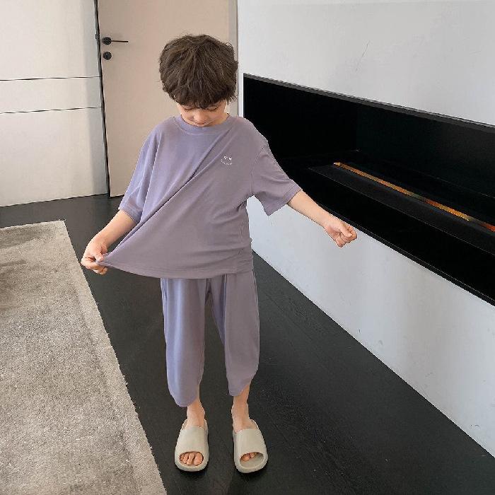 사이버 축하 소년 잠옷 여름 어린이 여름 어린이 아이스 실크 소년 캐주얼 에어컨 옷 얇은 가정 옷 세트
