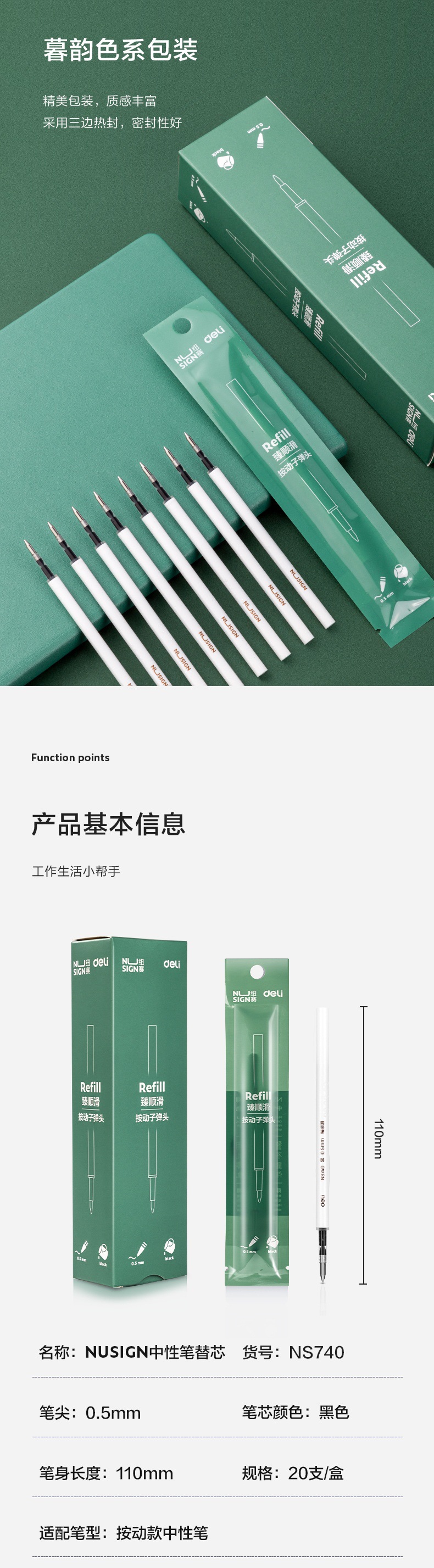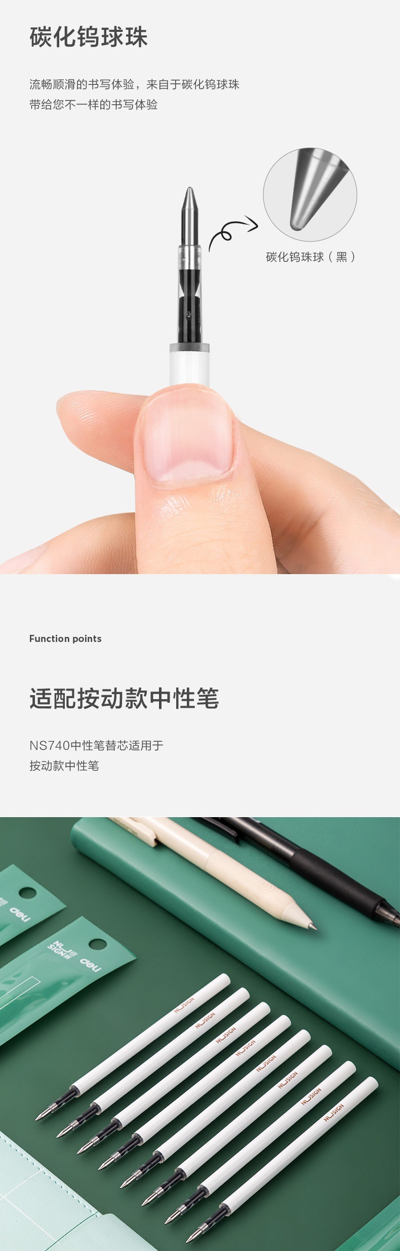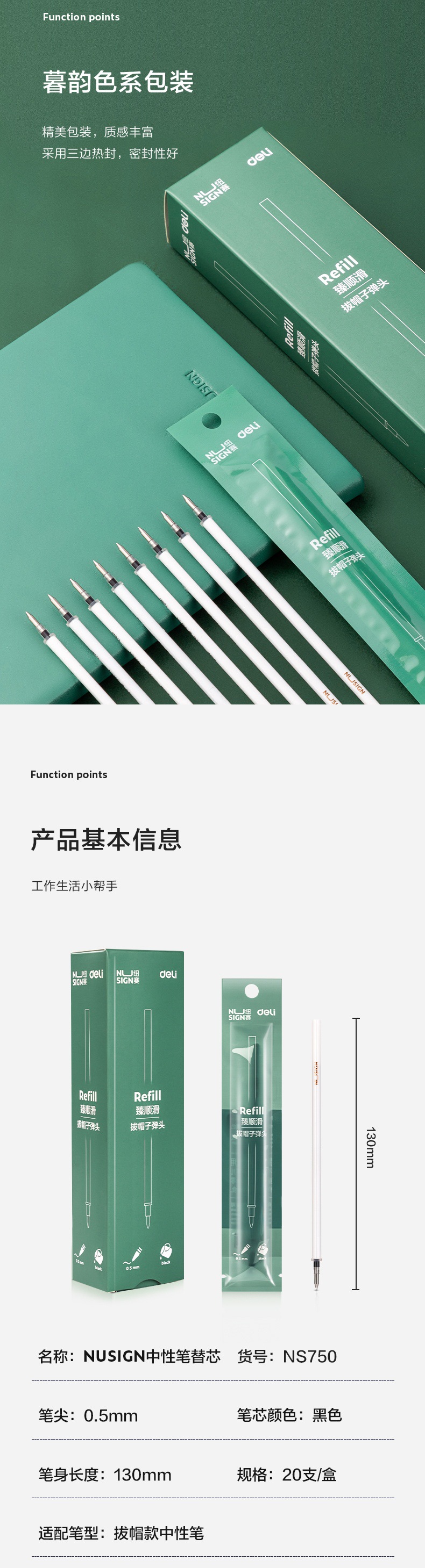 Deli New Sai Zhen Smooth Black 0.5 젤 펜 리필 로타리 푸시 풀 캡 단순