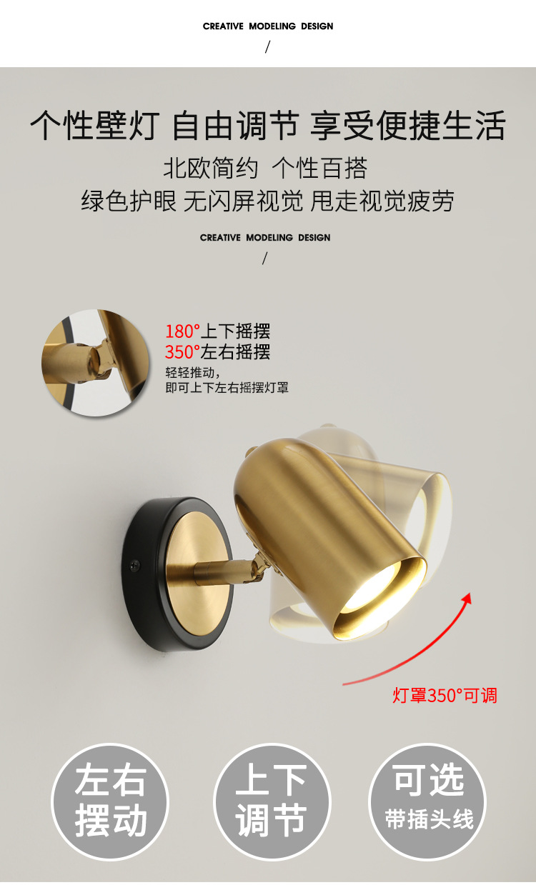벽 램프 침실 침대 옆 램프 이동식 회전 호텔 방 램프 현대 간단한 북유럽 조명 고급 방 작은 벽 램프