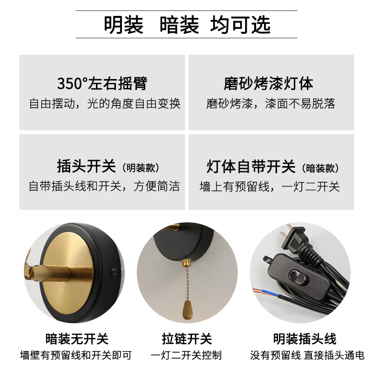 벽 램프 침실 침대 옆 램프 이동식 회전 호텔 방 램프 현대 간단한 북유럽 조명 고급 방 작은 벽 램프스토어 가기