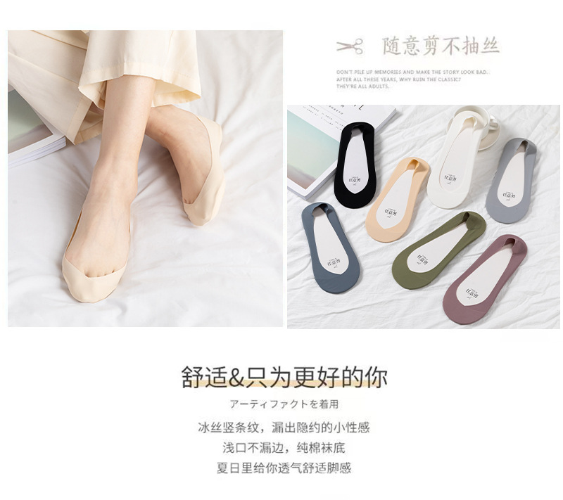 보트 양말 여성용 양말 여름 얇은 순면 바닥 얼음 실크 얕은 입 보이지 않는 양말 미끄럼 방지 양말 여성용 양말과 함께 떨어지지 않음