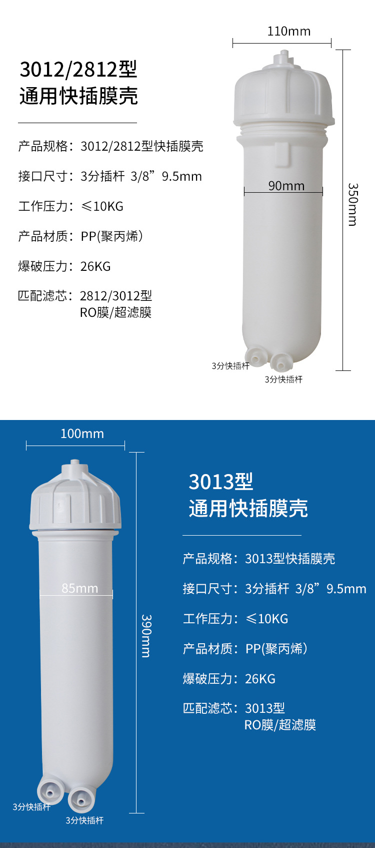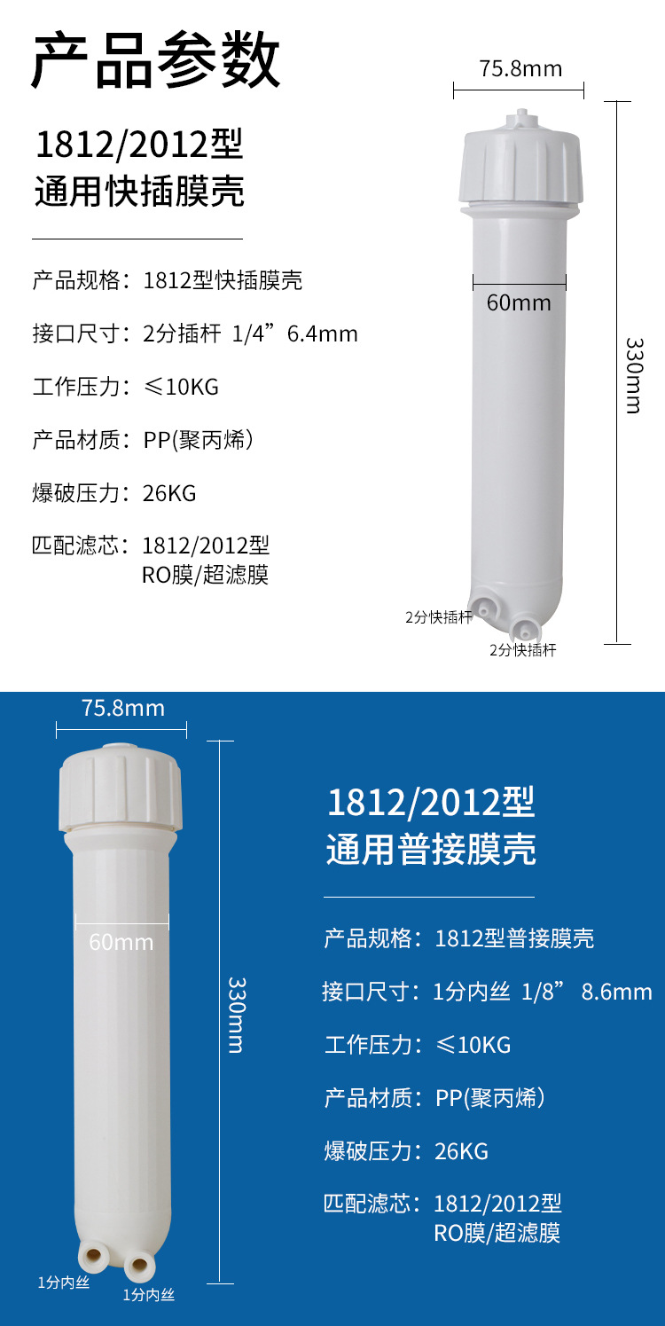 국내 순수 정수기 RO 멤브레인 쉘 1812/2012/3012/3013 멤브레인 쉘 역삼투 퀵 연결/일반 멤브레인 쉘