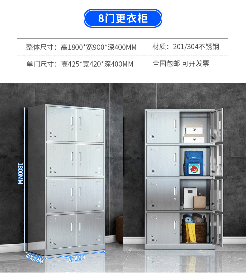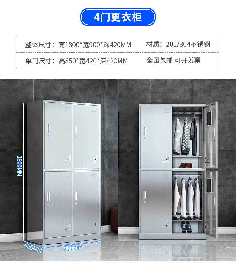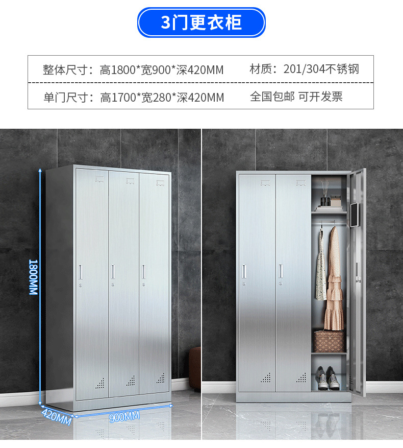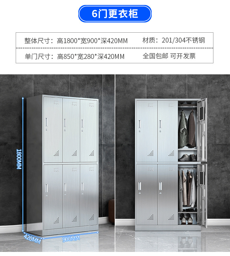 304 스테인레스 스틸 사물함 작업장 직원 교환 캐비닛 먼지가 없는 스테인레스 스틸 사물함 식품 공장 사물함스토어 가기