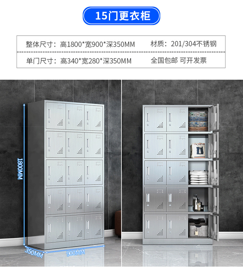 • 15도어 스테인리스 스틸 보관 캐비닛 [완전 조립 배송]