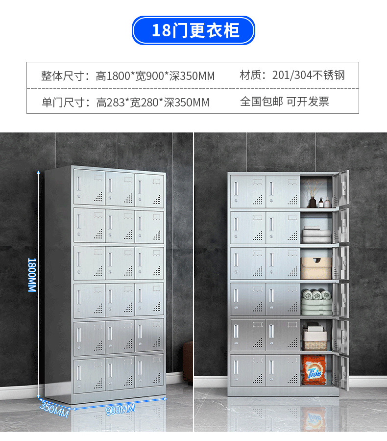 • 18도어 스테인리스 스틸 사물함 [택배 배송]