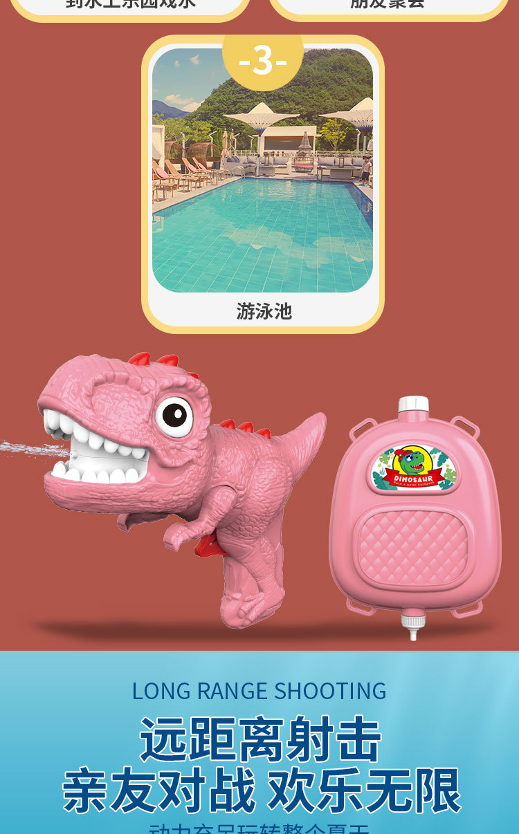 • 핑크 공룡 [중국어 컬러 박스] 배낭 물총