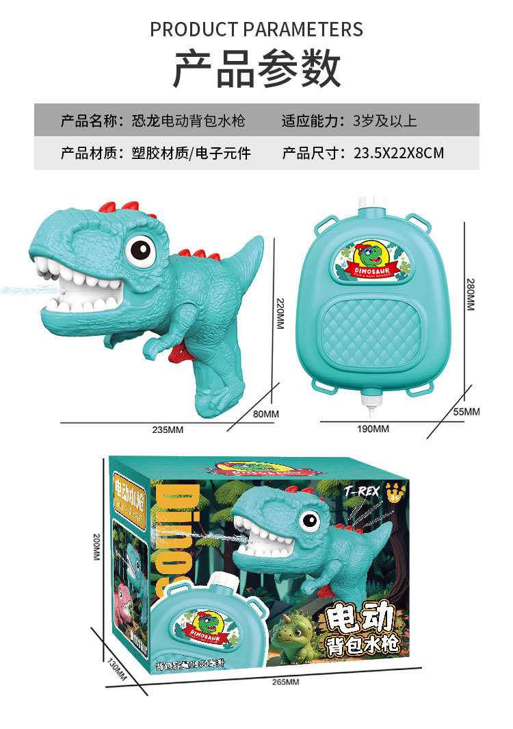 여름의 새로운 공룡 전기 배낭 물총 어린이 장난감 다량의 연속 모래 해변 물총 도매