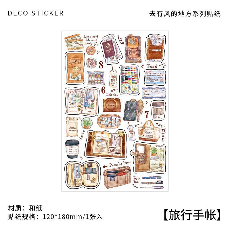 Infeel.Me 윈디 플레이스 시리즈 및 종이 스티커로 이동 한국 복고풍 여행 핸드북 장식 재료 스티커