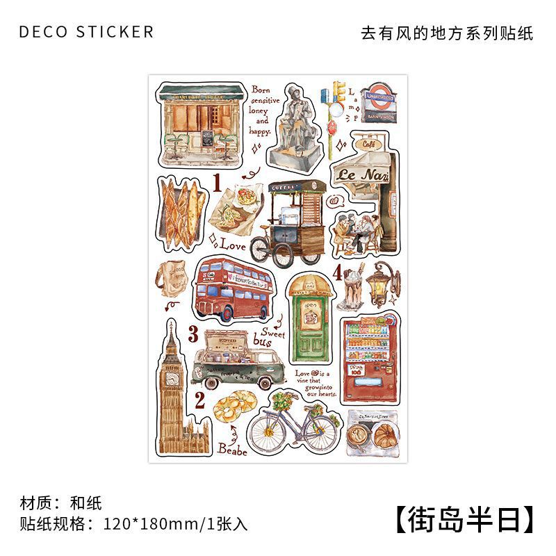 Infeel.Me 윈디 플레이스 시리즈 및 종이 스티커로 이동 한국 복고풍 여행 핸드북 장식 재료 스티커스토어 가기