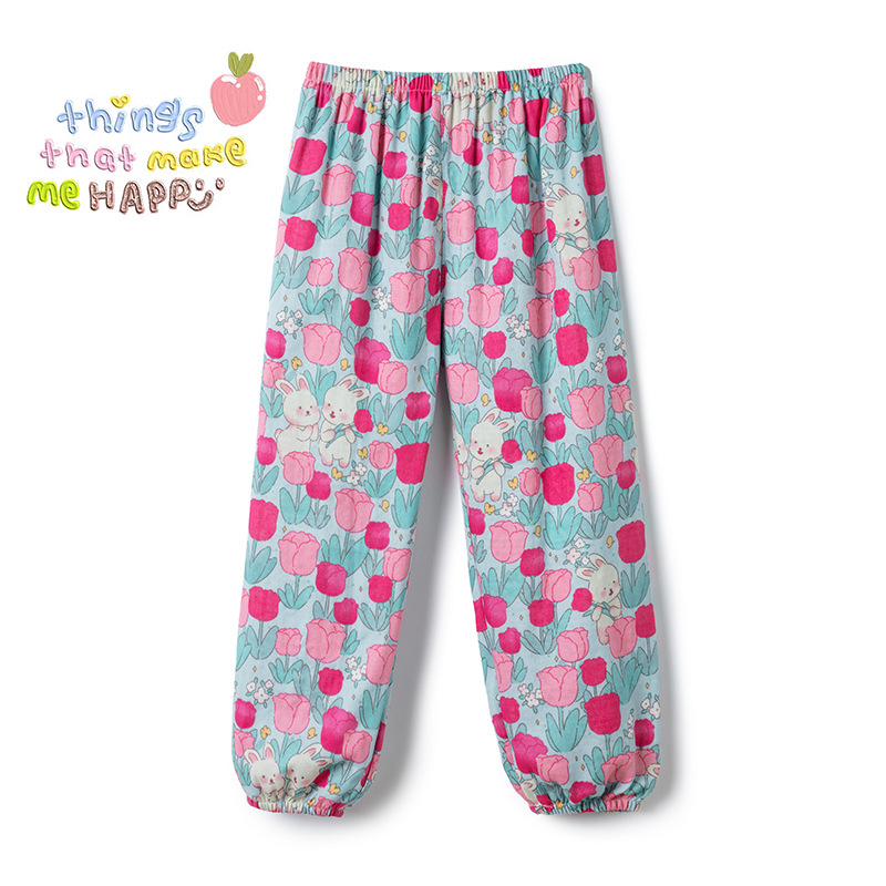 면 남성과 여성의 바지 모기 방지 바지 만화 여름 얇은 어린이 통기성 블루머 바지 편안한 귀여운 다리 바지