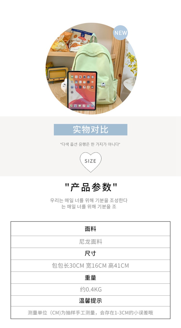 신선하고 달콤한 소녀 하트 배낭 새로운 스타일 간단하고 다재다능한 대학 스타일 초등학교 중학교 가방 ins 배낭