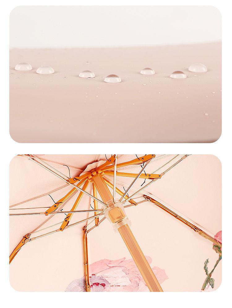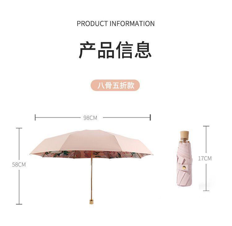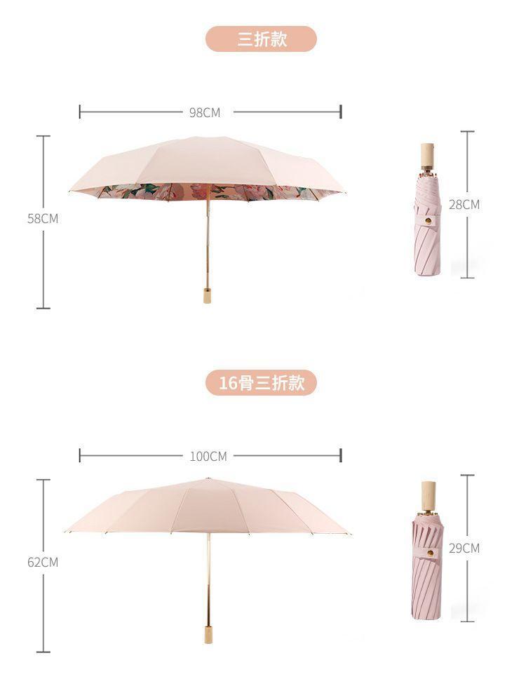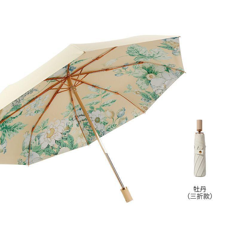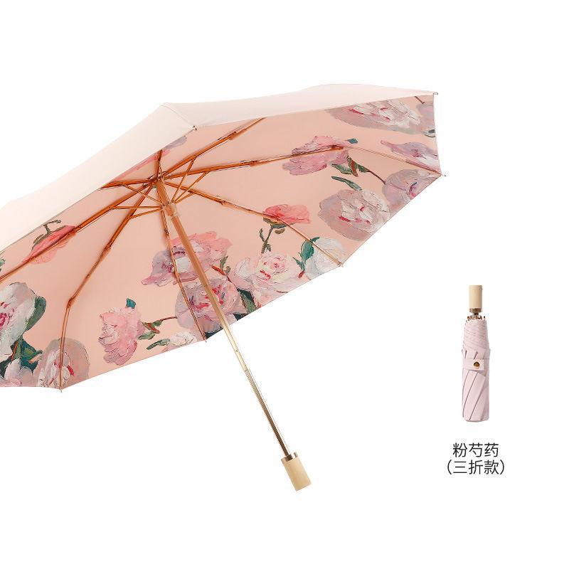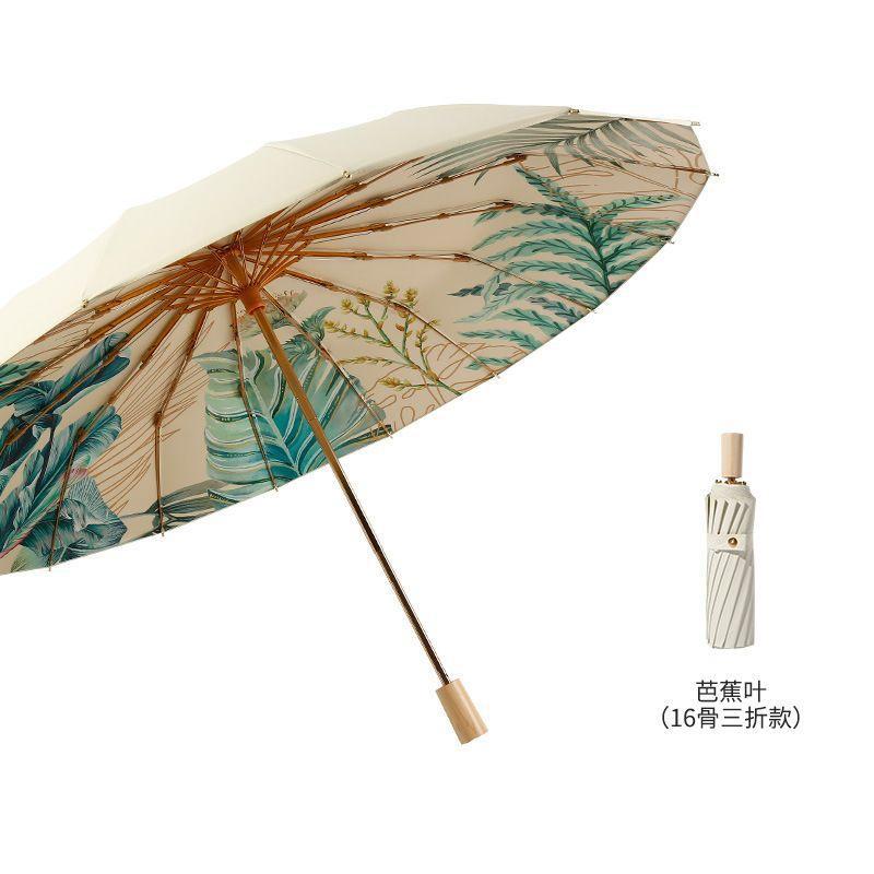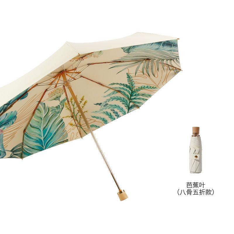 70% off 나무 손잡이, 금색 막대, 알루미늄 합금 우산, 자외선 차단, 컬러 고무 접이식 겸용 양산, 트렌디한 아웃도어스토어 가기