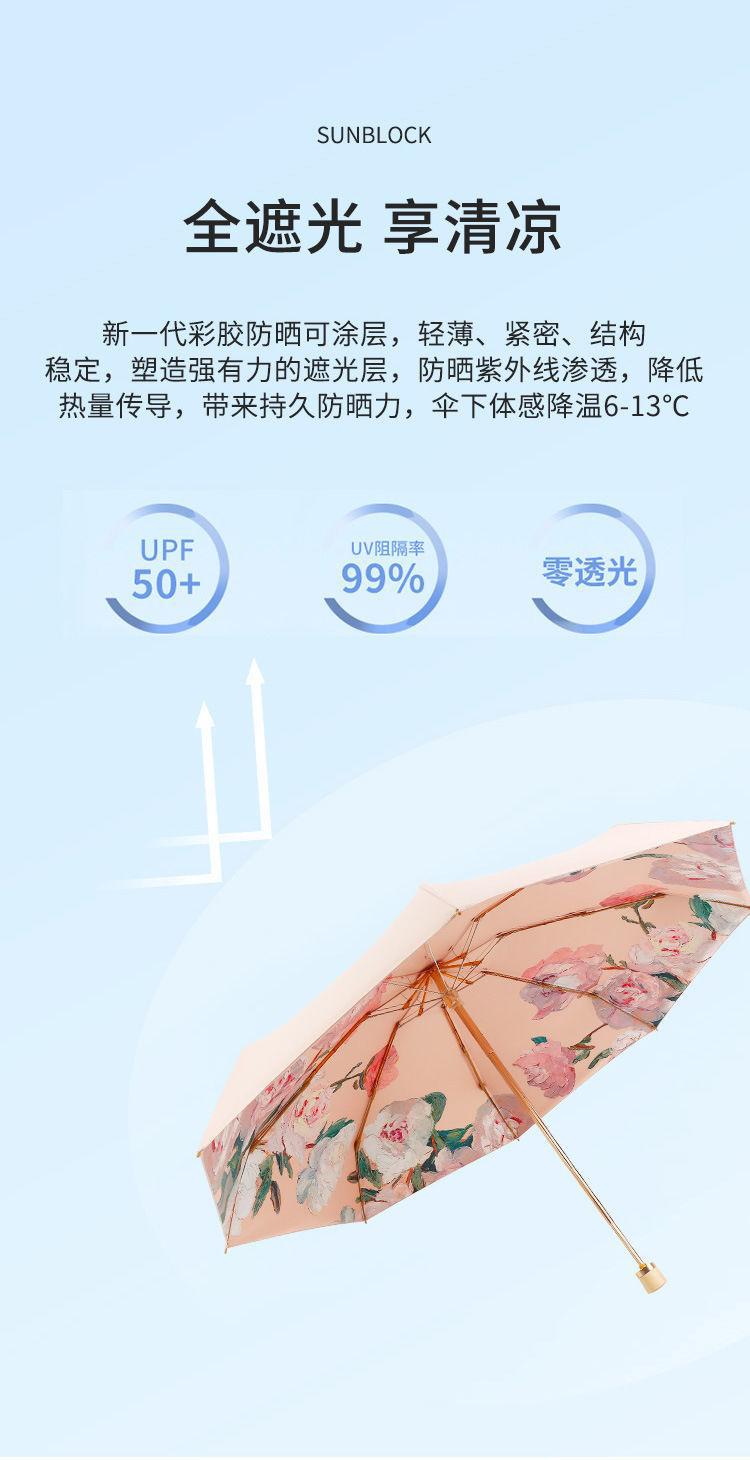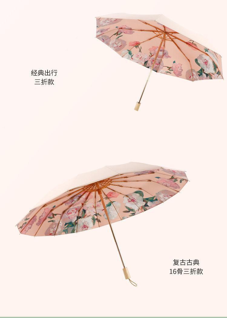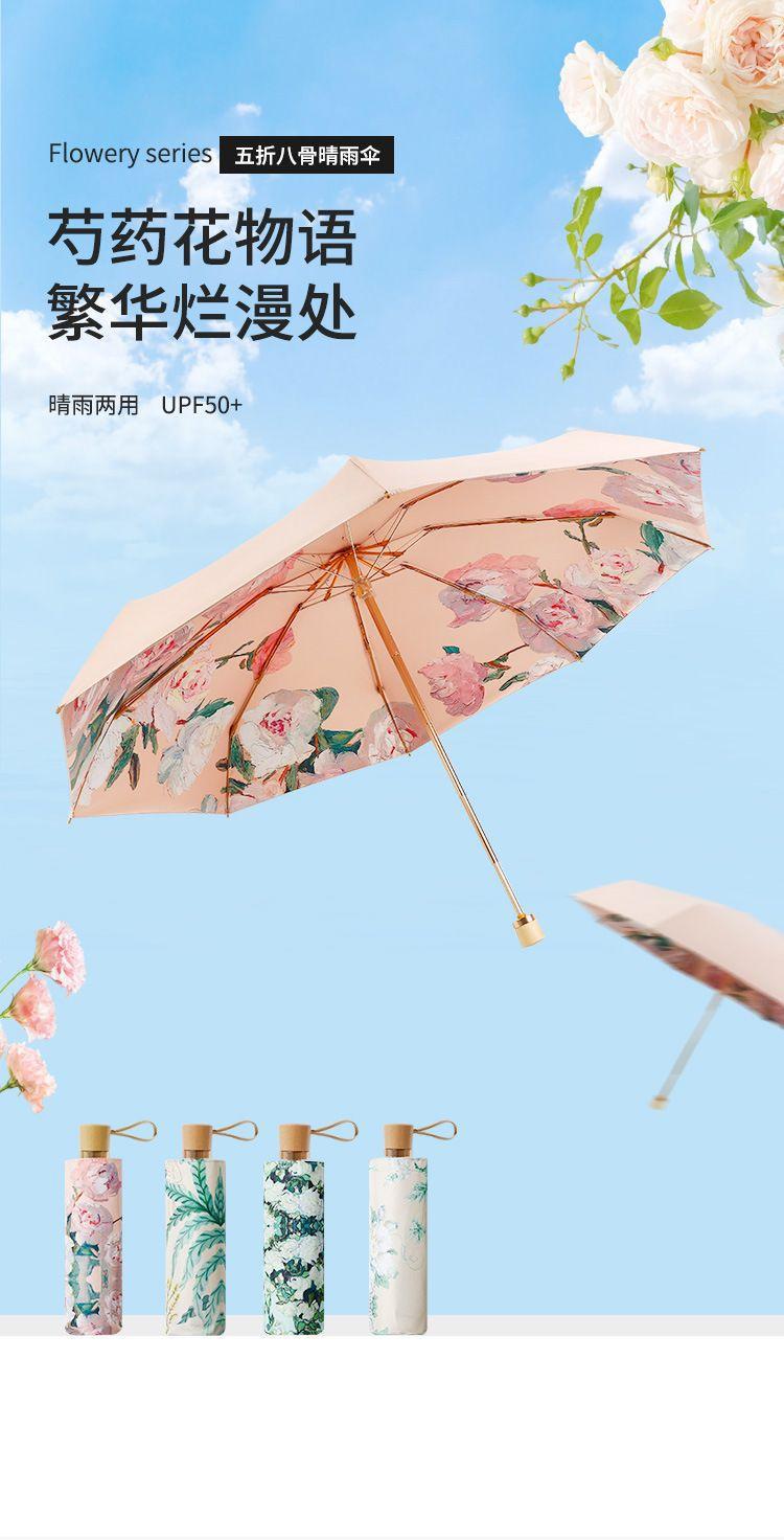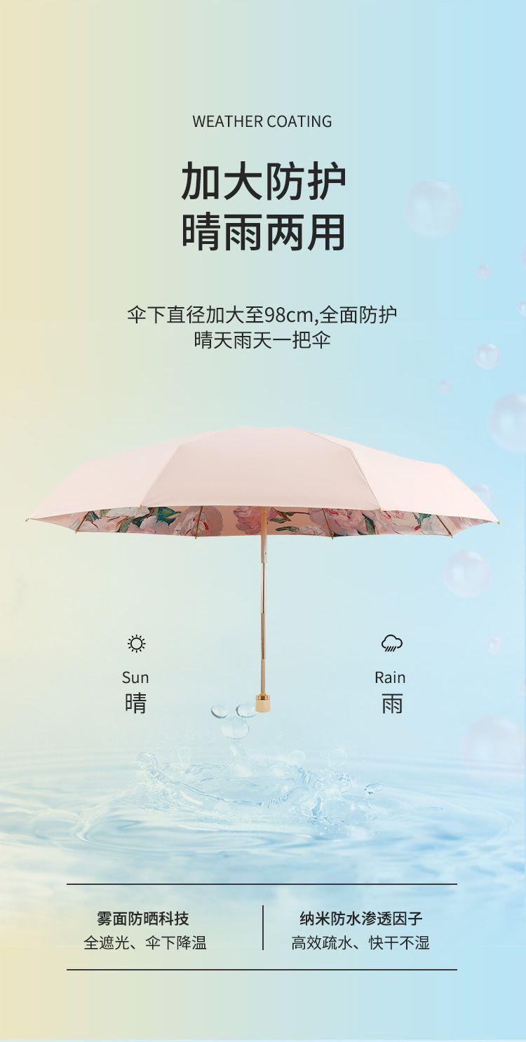 70% off 나무 손잡이, 금색 막대, 알루미늄 합금 우산, 자외선 차단, 컬러 고무 접이식 겸용 양산, 트렌디한 아웃도어스토어 가기