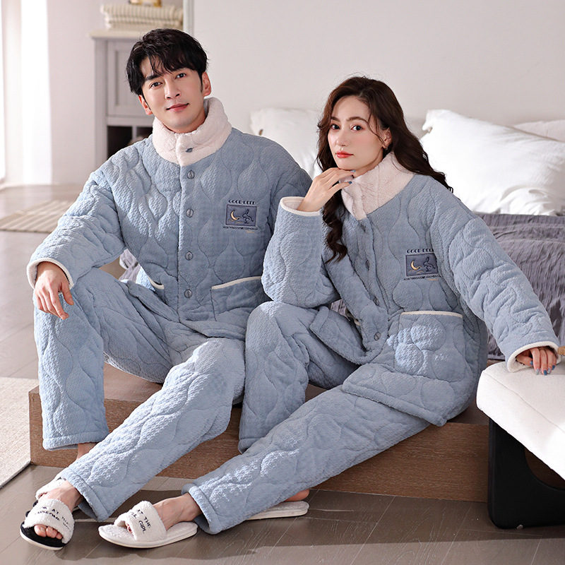 겨울 3 층 두꺼운 우유 벨벳 퀼트 잠옷 여자의 긴팔 세트 겨울 정전기 방지 토끼 벨벳 커플 잠옷
