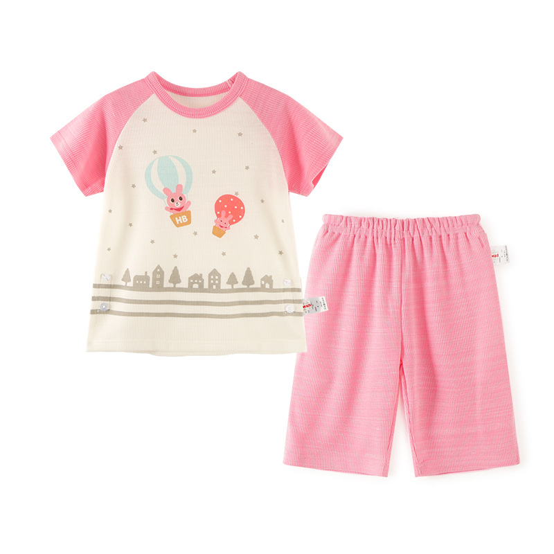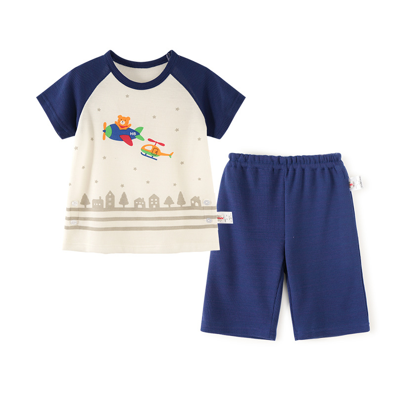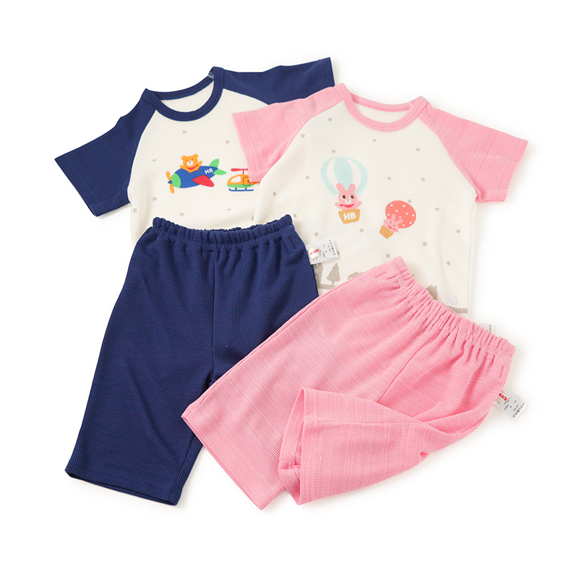 Mikihippy 여름 소년과 소녀 가정 의류 세트 어린이 면 얇은 와플 2 피스 통기성스토어 가기