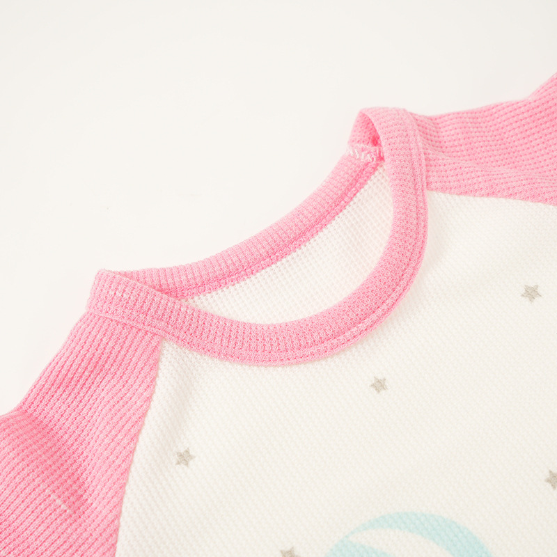 Mikihippy 여름 소년과 소녀 가정 의류 세트 어린이 면 얇은 와플 2 피스 통기성