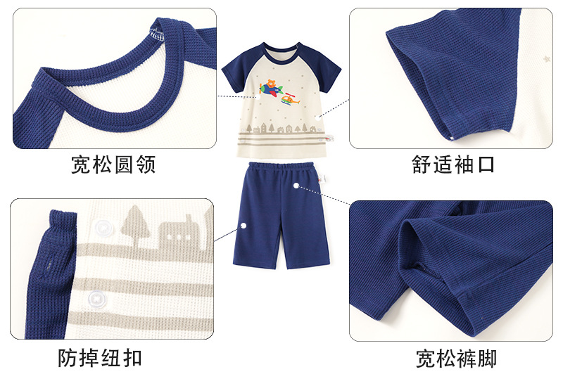 夏季华夫格透气睡衣套装