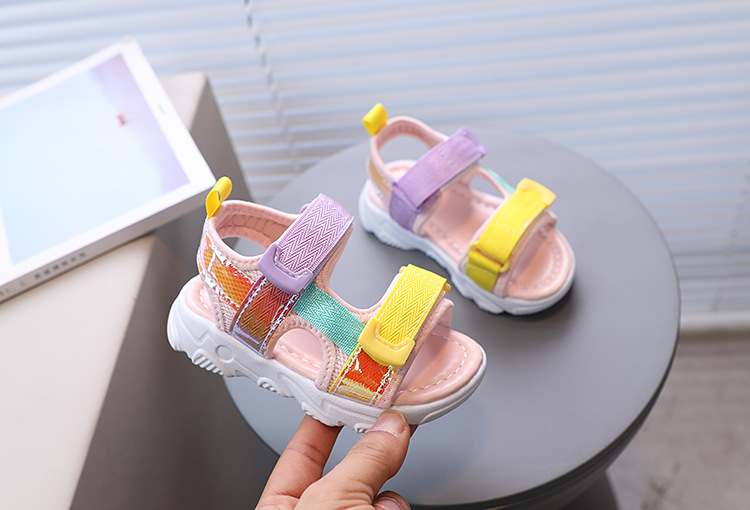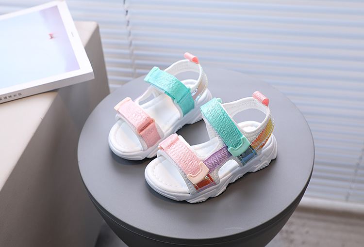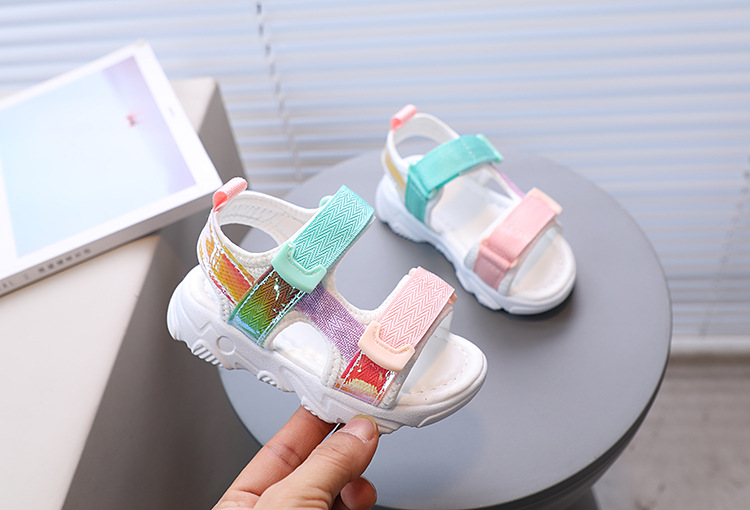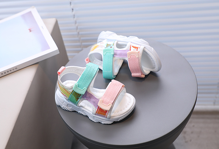 여아 오픈 토 비치 샌들 여름 새로운 어린이 다채로운 부드러운 밑창 캐주얼 유아 신발 한국 스타일
