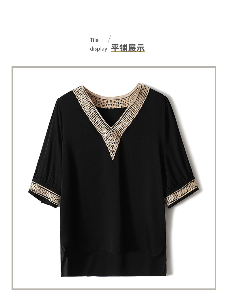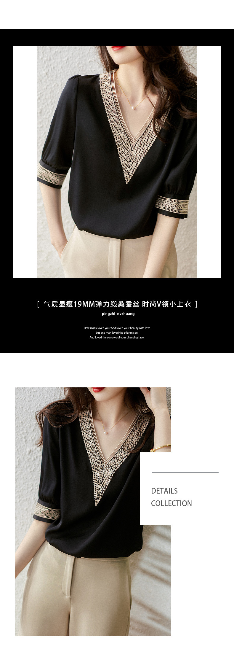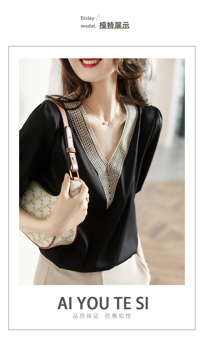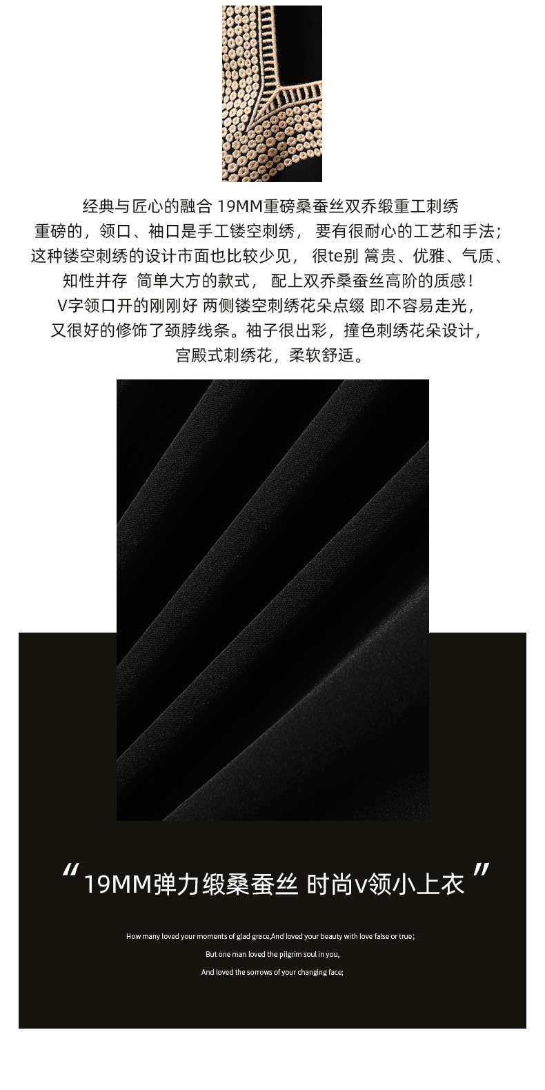 중공 자수 실크 티셔츠 19mm 스트레치 새틴 뽕나무 실크 유행 우아한 슬리밍 V-넥 스몰 탑 블랙 여성복스토어 가기