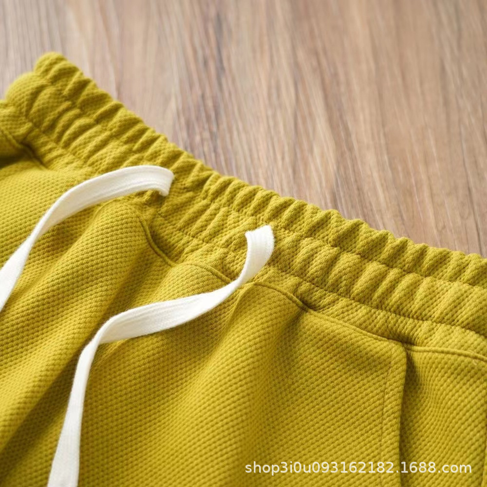 남아 아동복 반팔 투피스 세트 2023 여름 신상품 와플 스타일리스트 반팔 중형 얇은 세트