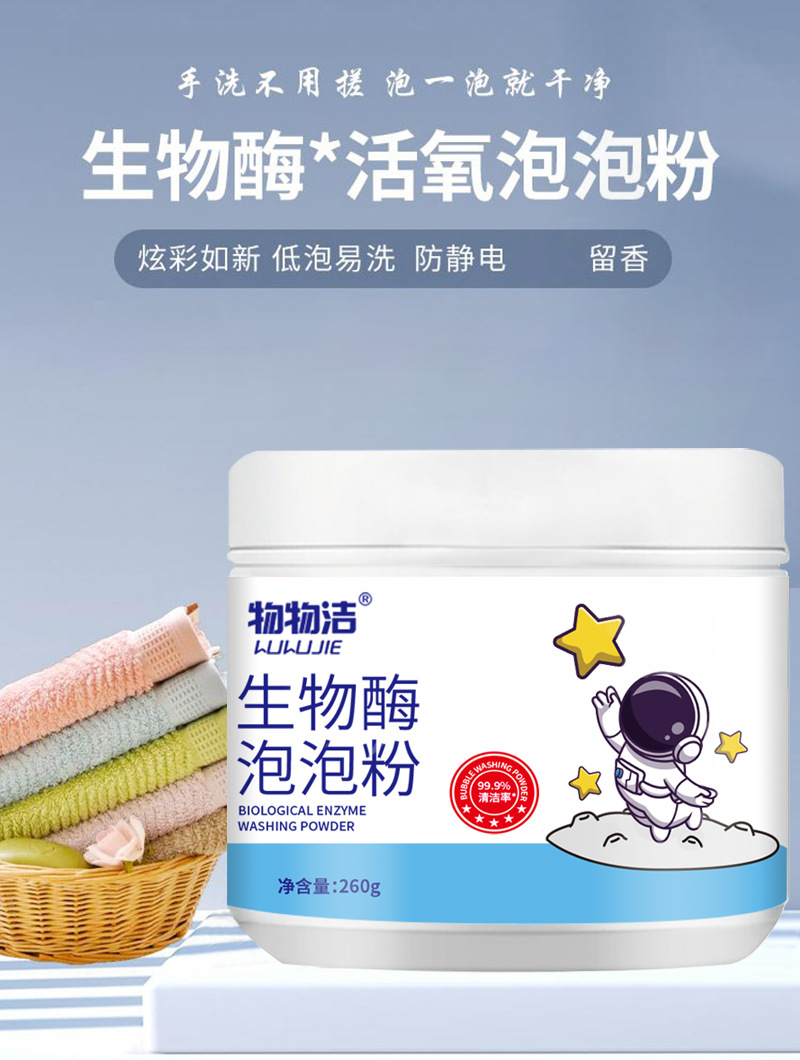 재료 청소 생물학적 효소 거품 분말 얼룩 제거 강한 표백제 노란색 얼룩 제거 미백 세척 분말 게으른 거품 분말