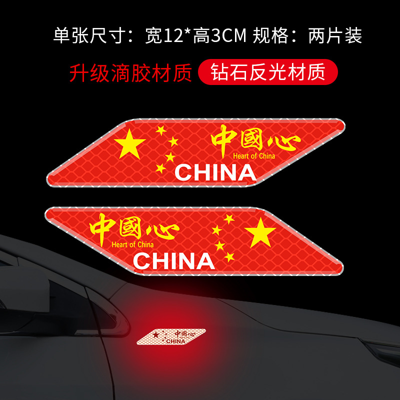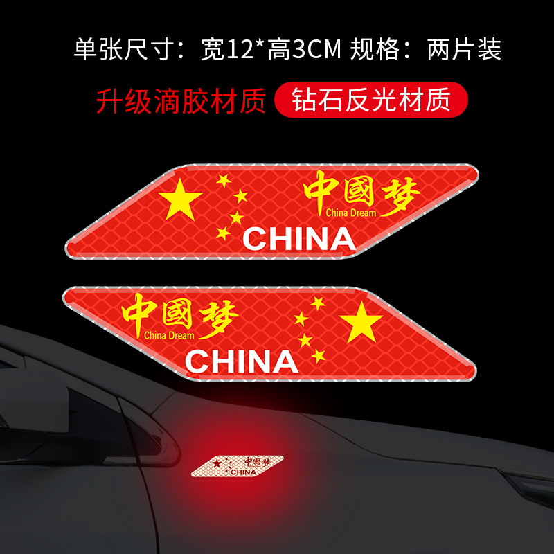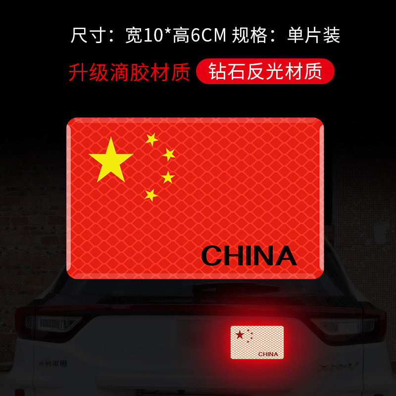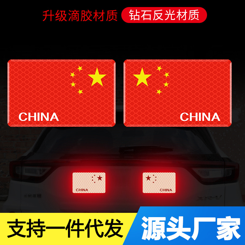 자동차 반사 국기 자동차 스티커 중국 5 성 붉은 깃발 차체 로고 접착제 드롭 스티커 3D 입체 발광 스크래치 스티커스토어 가기