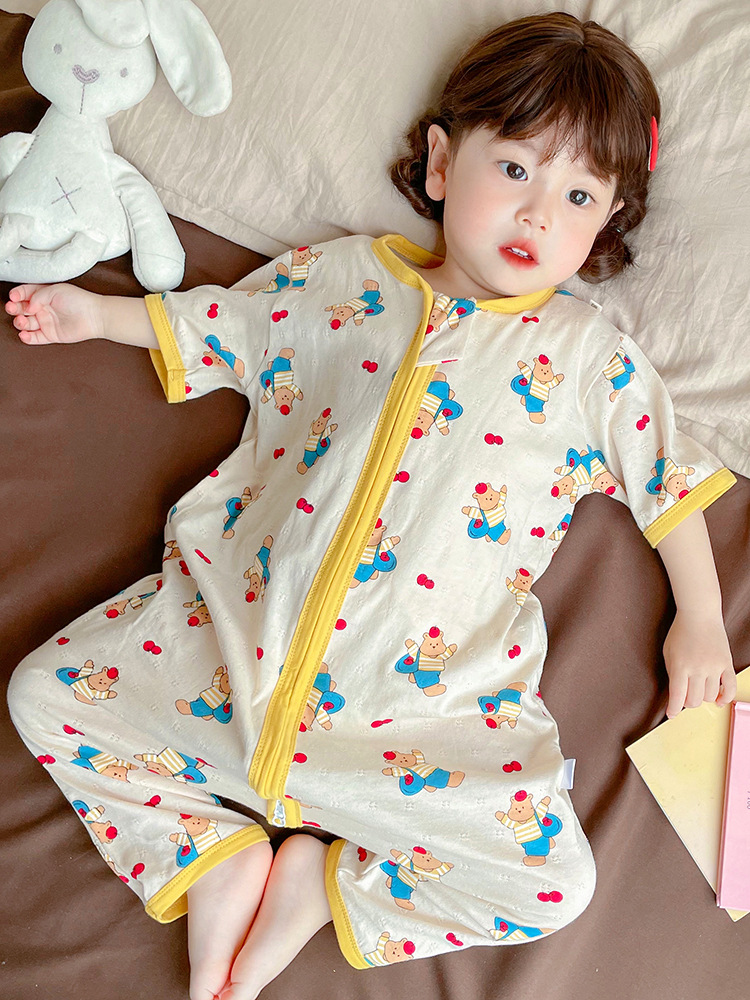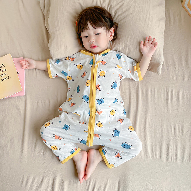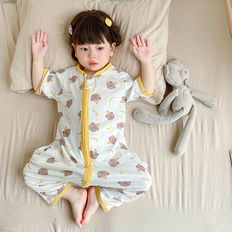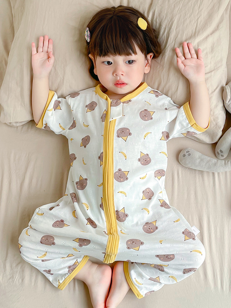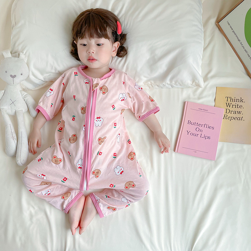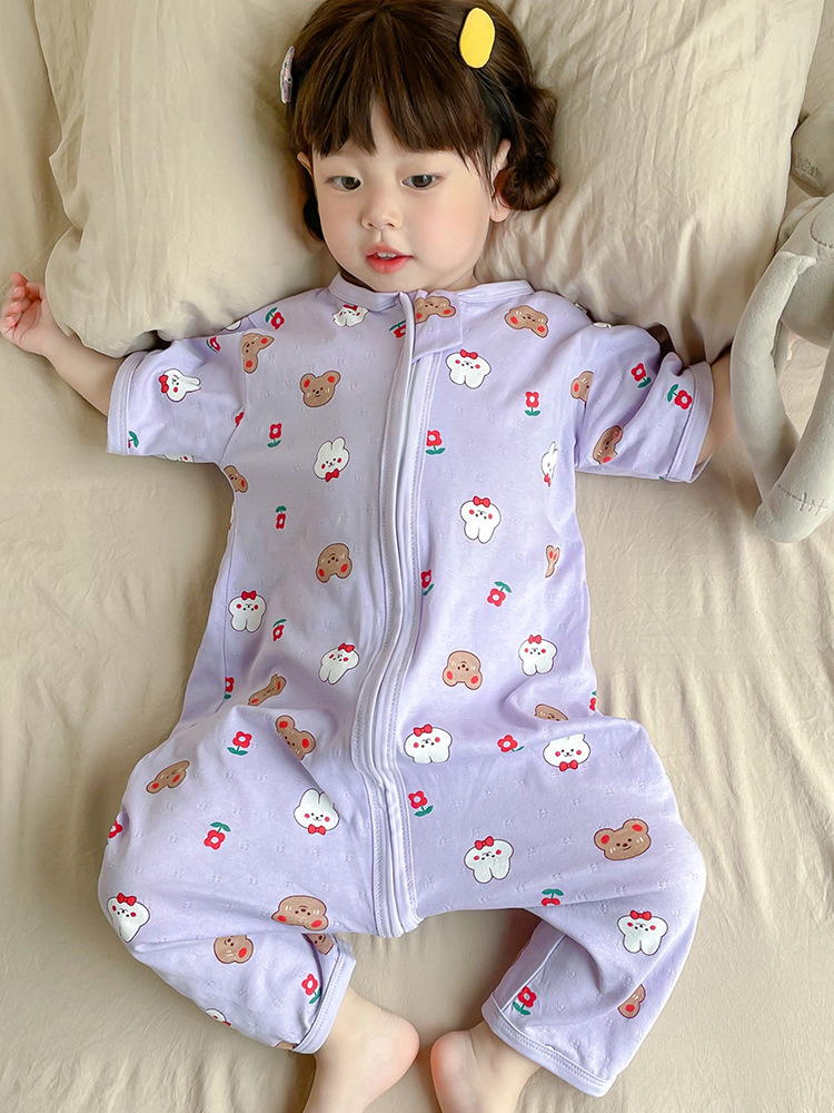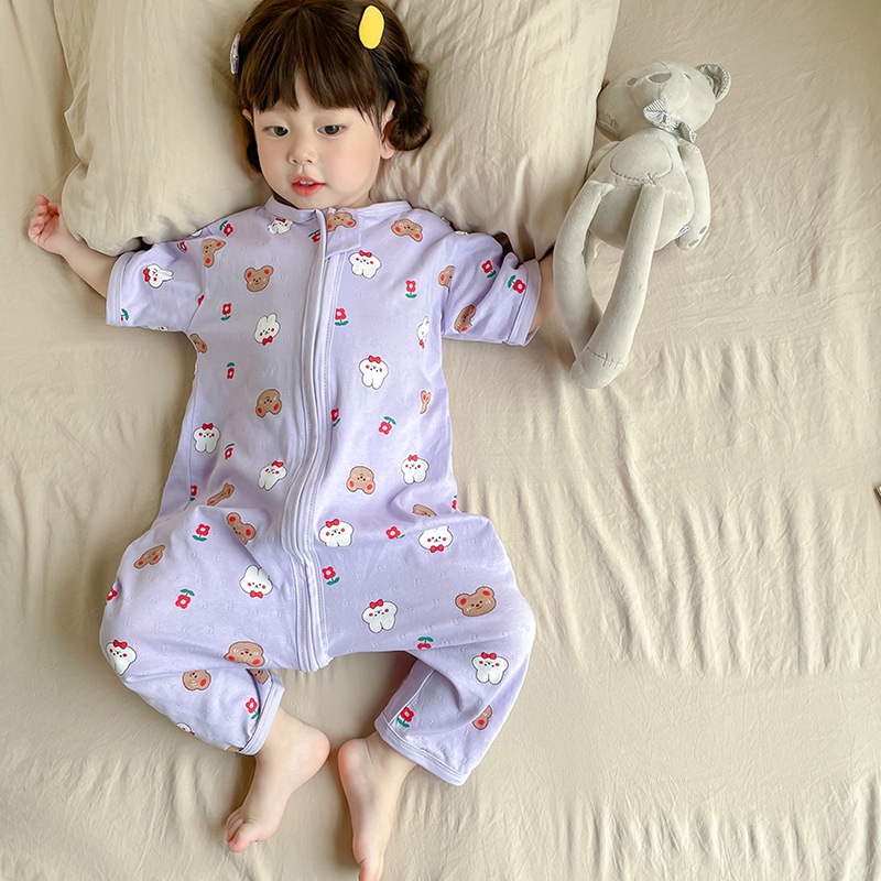 여름 아기 침낭 면 아기 안티 킥 퀼트 소녀를위한 어린이 원피스 잠옷 안티 감기 및 배꼽 얇은 스타일