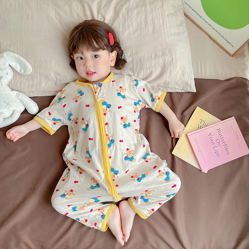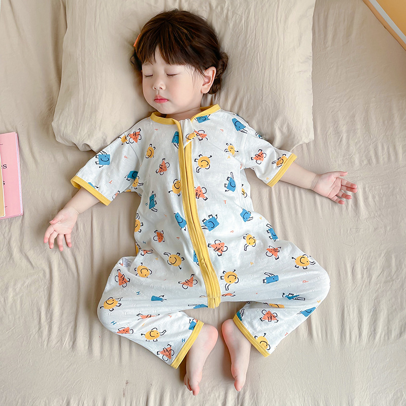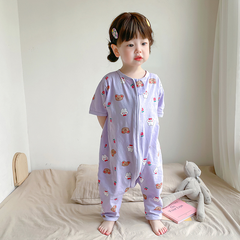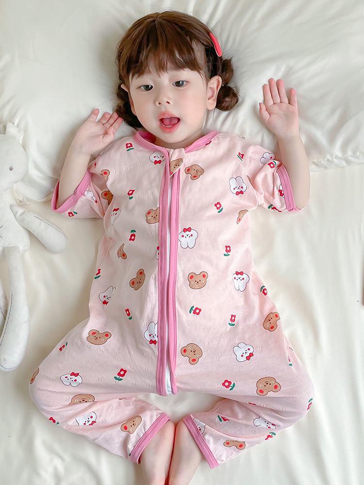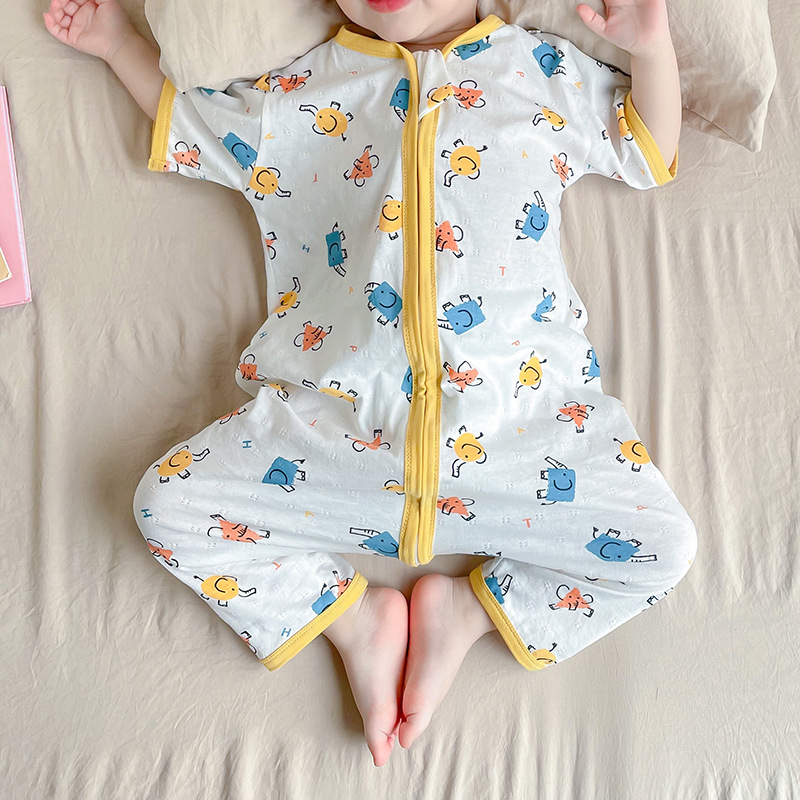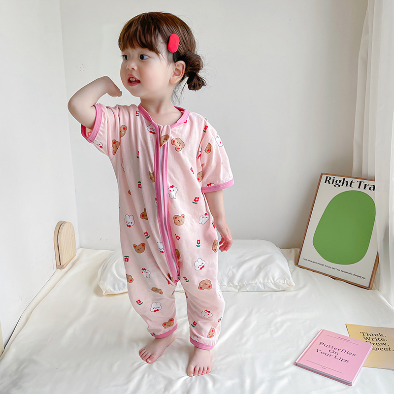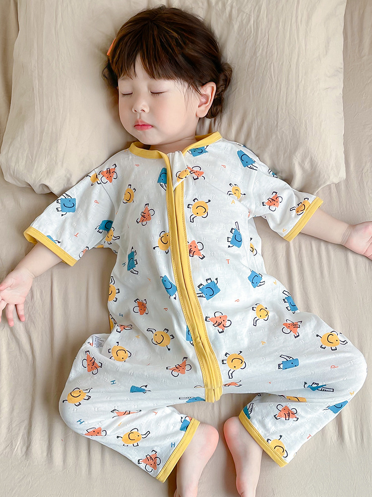 여름 아기 침낭 면 아기 안티 킥 퀼트 소녀를위한 어린이 원피스 잠옷 안티 감기 및 배꼽 얇은 스타일