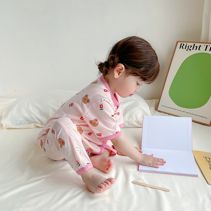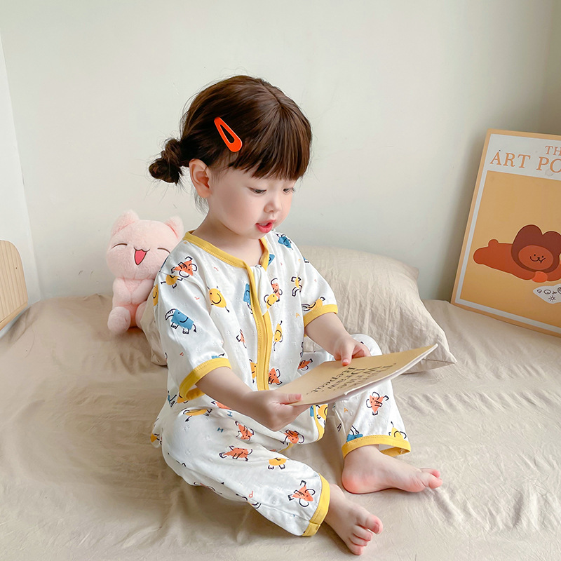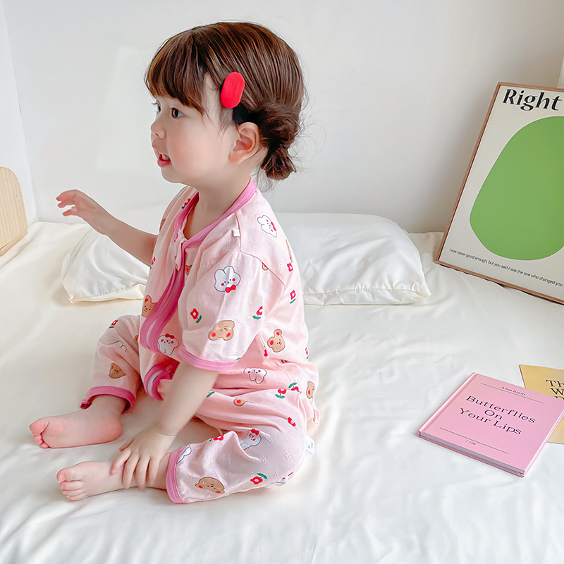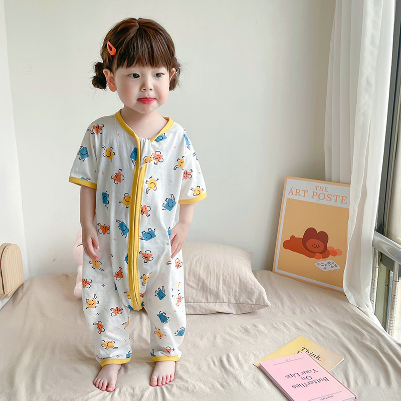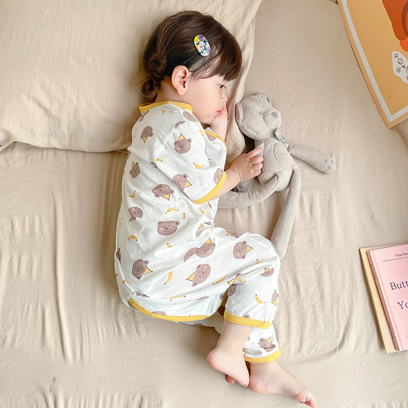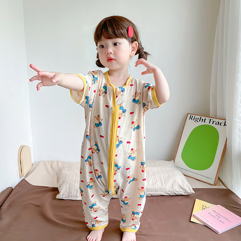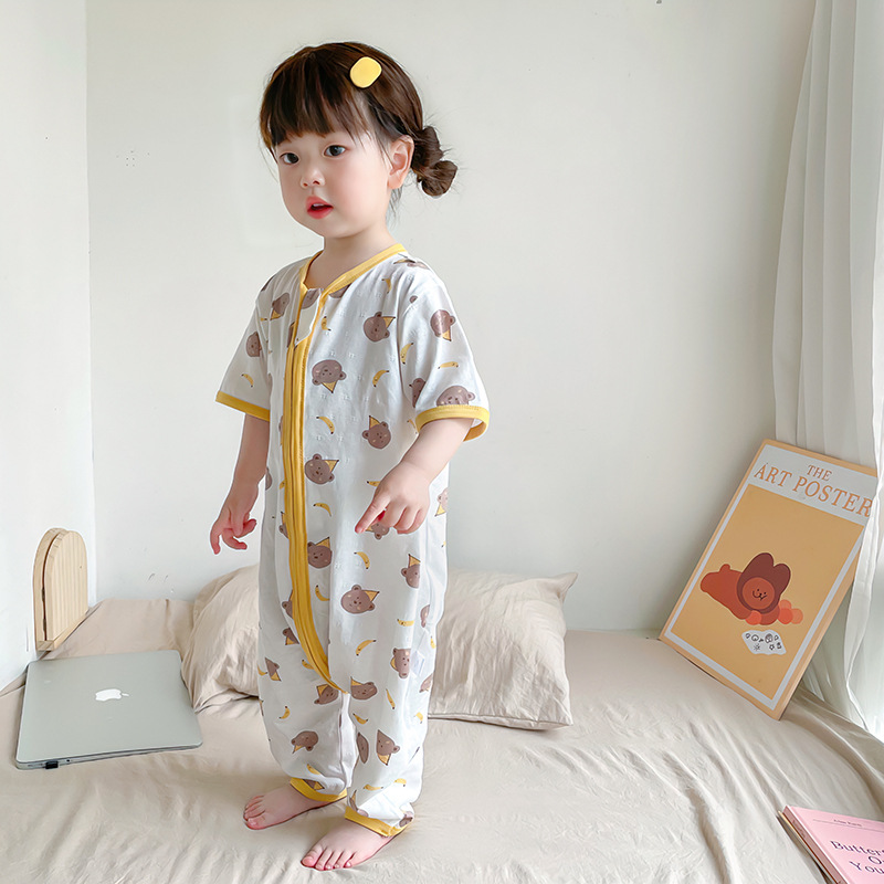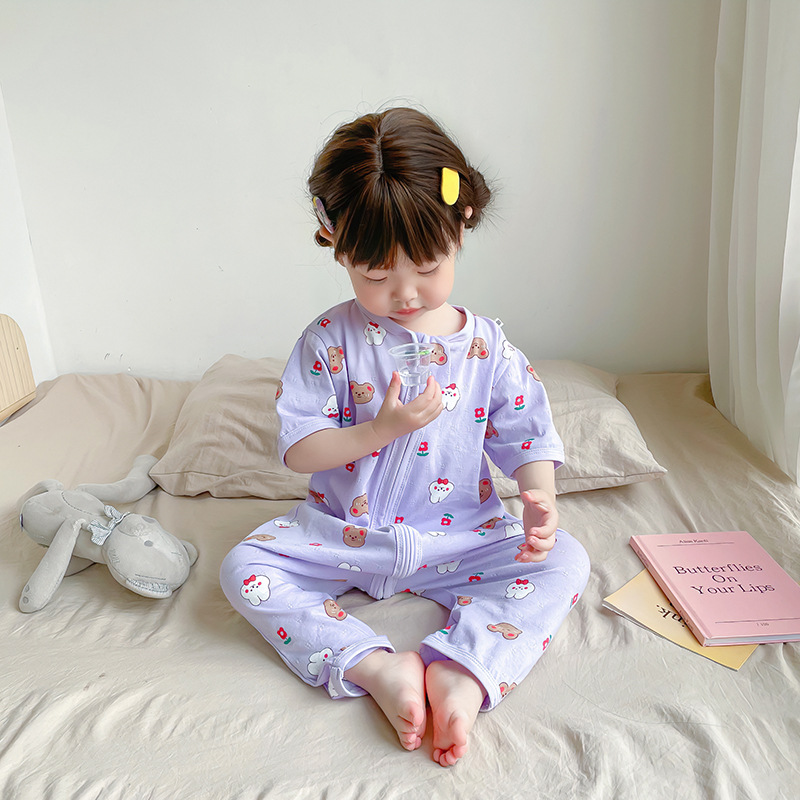 여름 아기 침낭 면 아기 안티 킥 퀼트 소녀를위한 어린이 원피스 잠옷 안티 감기 및 배꼽 얇은 스타일