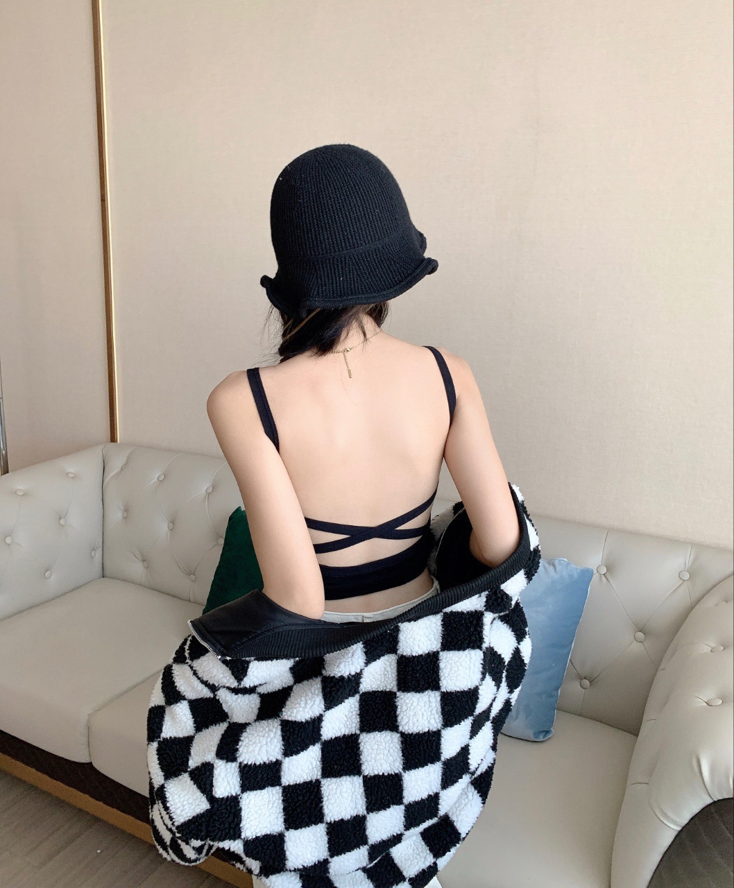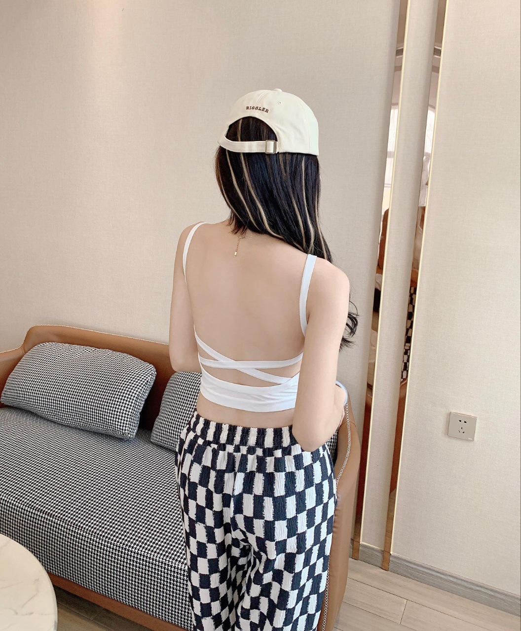 뜨거운 소녀 크로스 아름 다운 백 슬링 섹시한 내부 짧은 민소매 탑 가슴 패드 등이없는 요가 스포츠 조끼 여성용스토어 가기