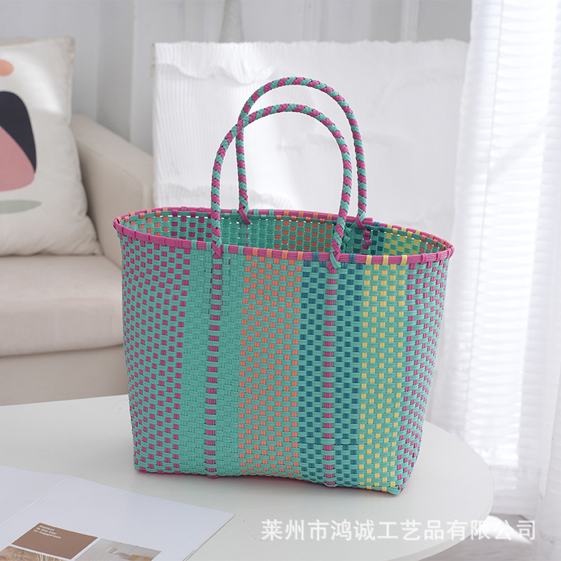 홍청 대용량 숄더백 뜨개질 가방 토트백 야채 바구니 피크닉 바구니 수제 뜨개질 가방 여성용 휴대용
