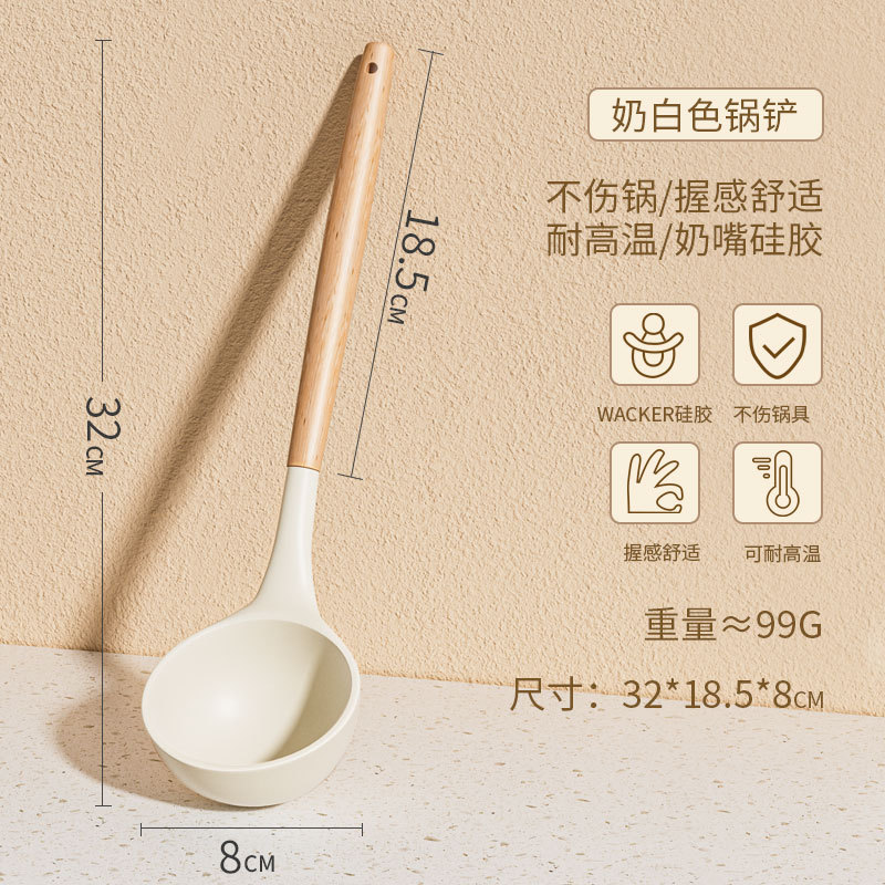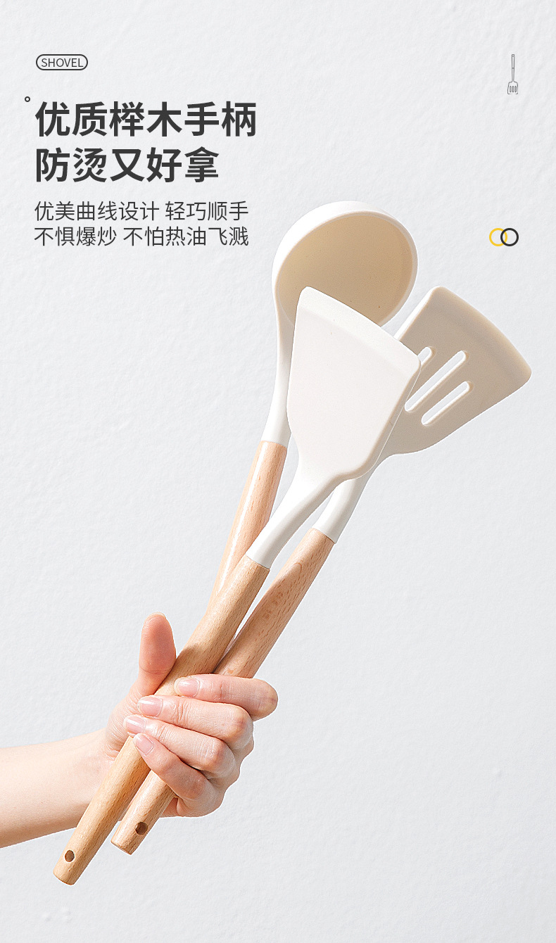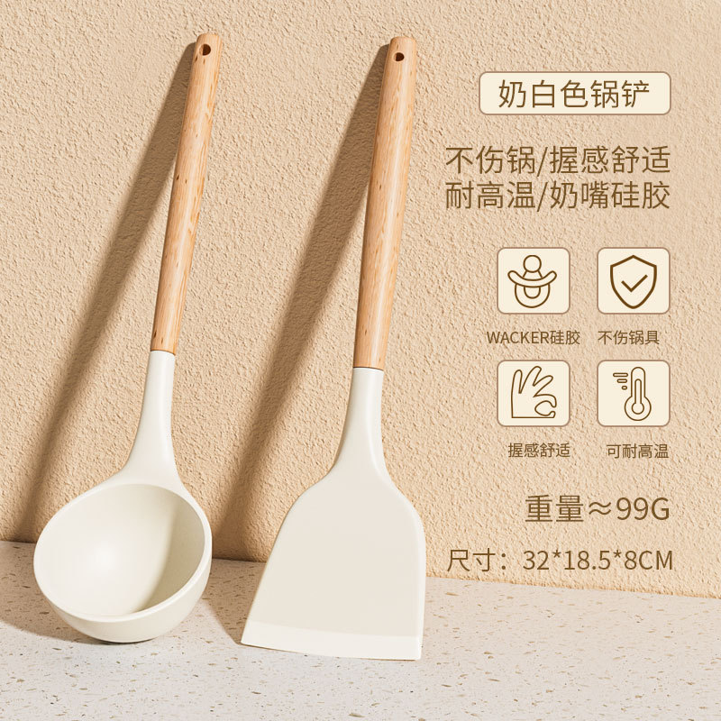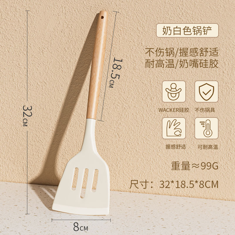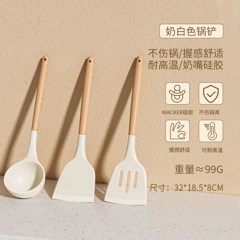• 너도밤나무 손잡이 실리콘 주걱 + 튀김 삽 + 스푼 3 종 세트