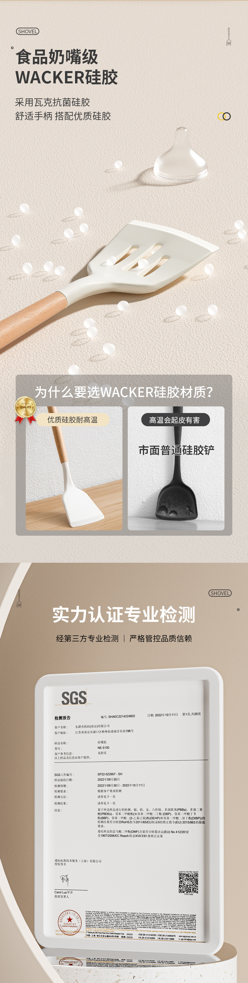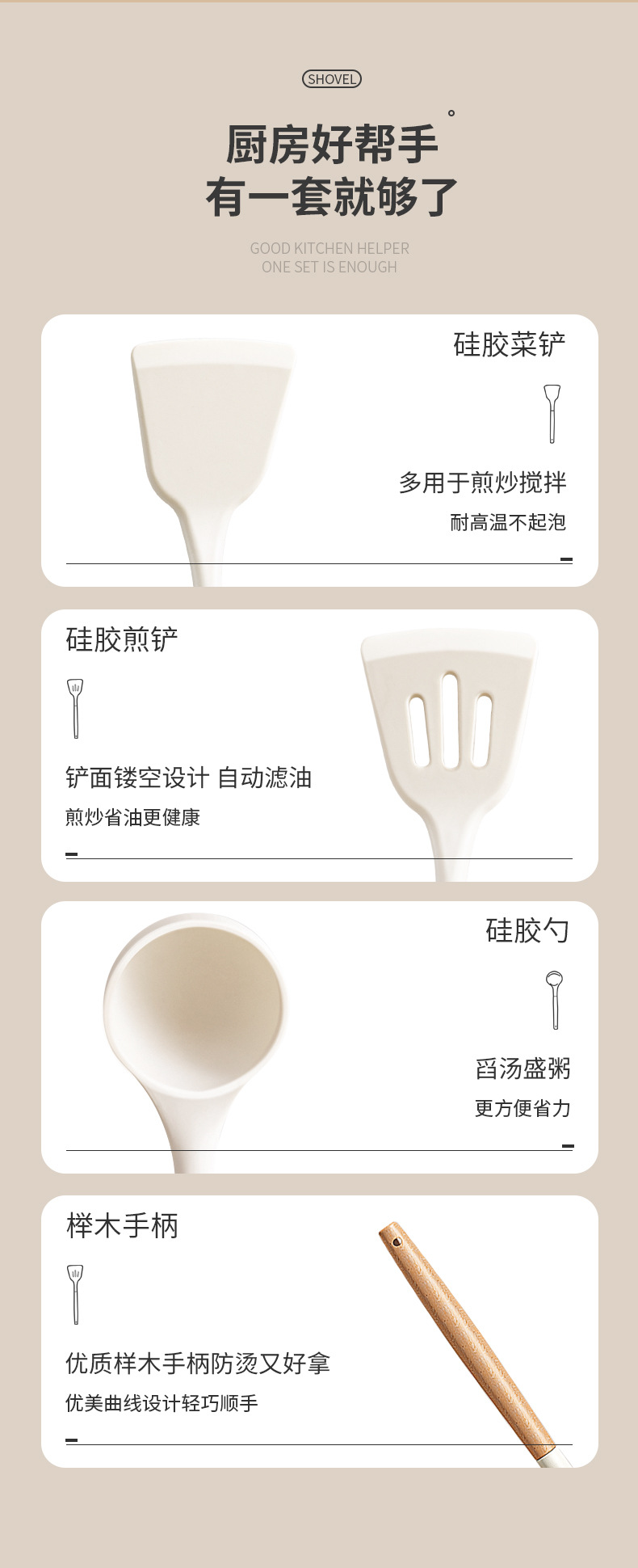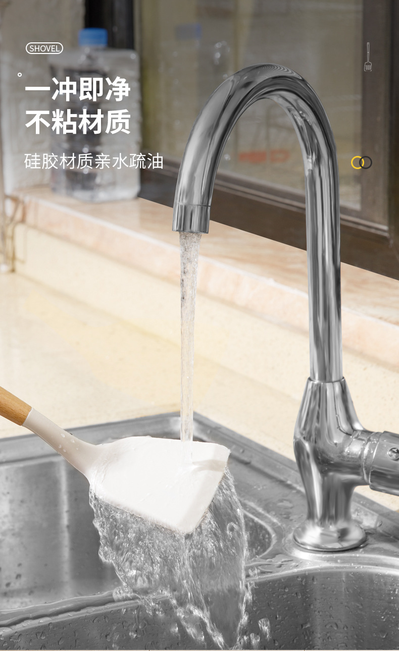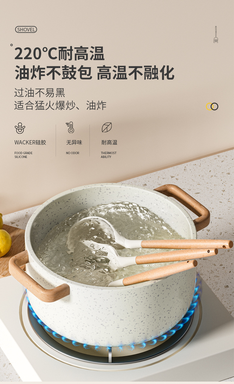 • 너도밤나무 손잡이 실리콘 주걱 + 튀김 삽 + 스푼 3 종 세트