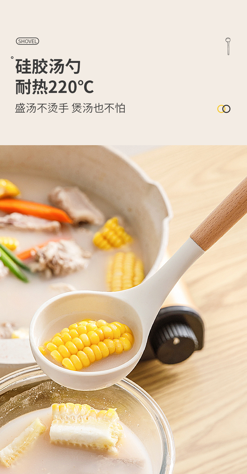 • 너도밤 나무 손잡이 실리콘 수프 스푼