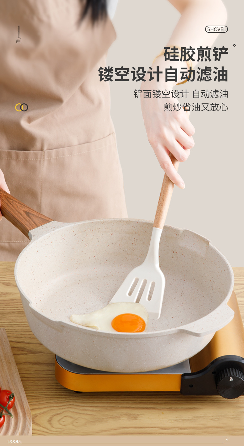 • 너도밤 나무 손잡이 실리콘 프라이팬