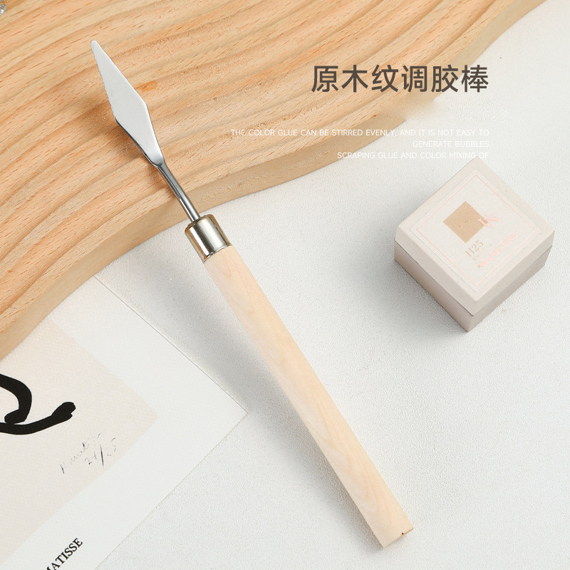 네일 아트 오리지널 우드 그레인 스테인레스 스틸 접착제 스틱 및 매니큐어 접착제 주걱 파우더 스팽글 믹싱 도구 도매