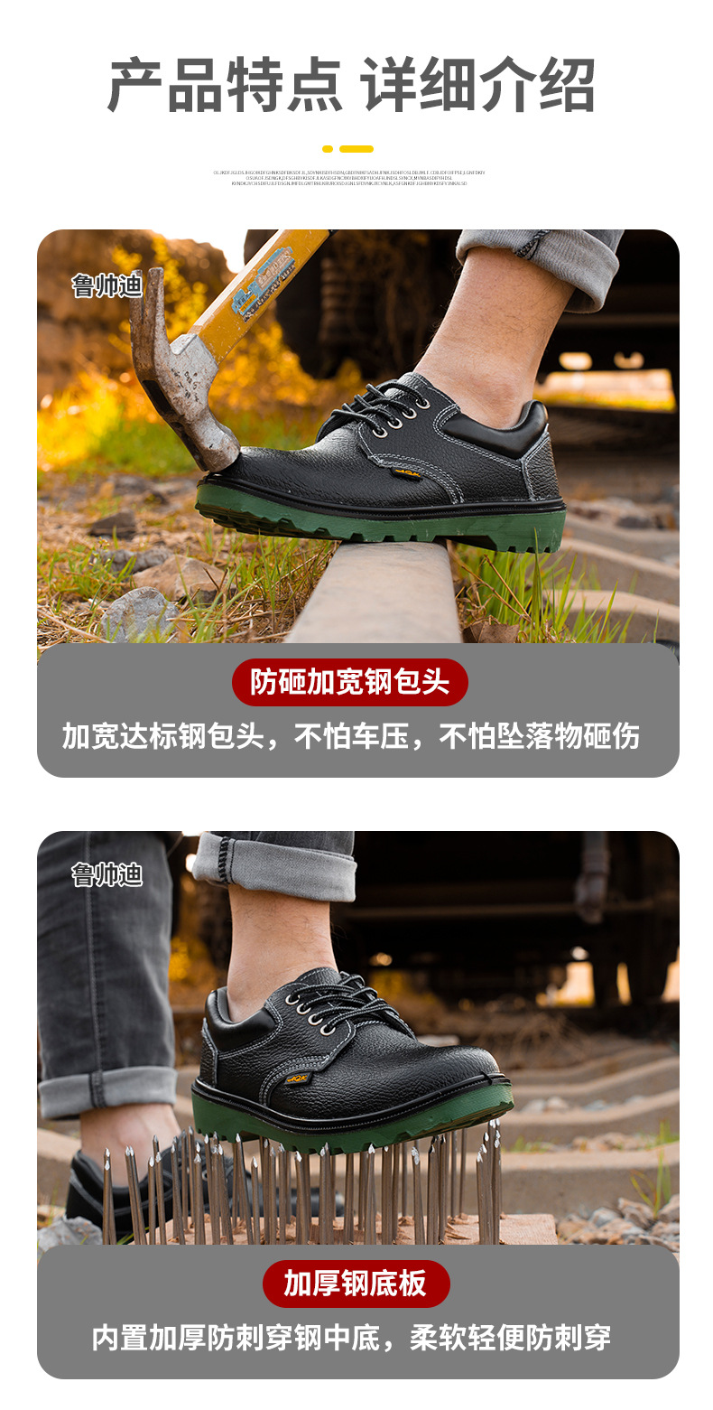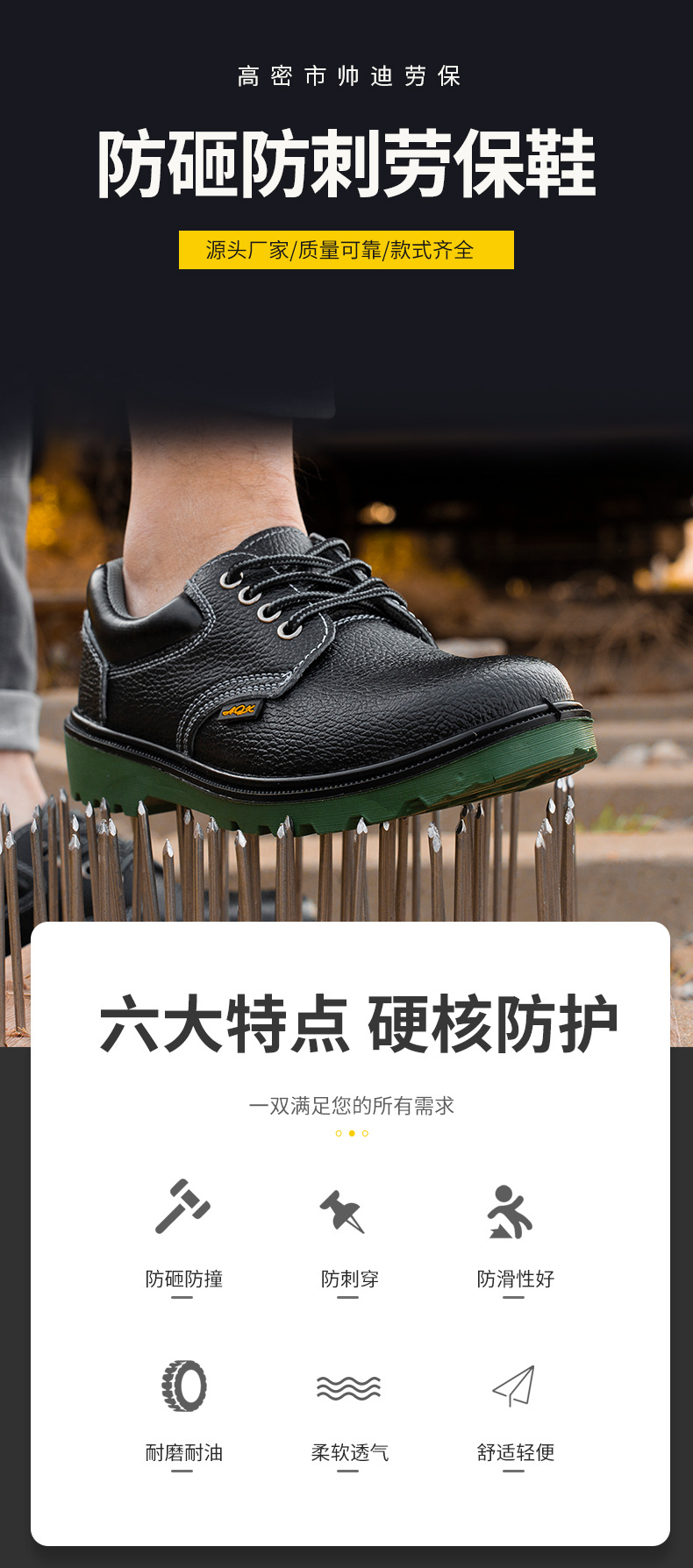 안전 신발 남성용 아이언 토 스매싱 방지 피어싱 방지 솔리드 바닥 내유성 산 및 알칼리 방지 소가죽 내마모성 보호 신발스토어 가기