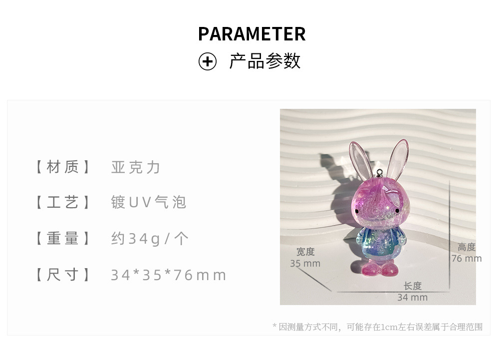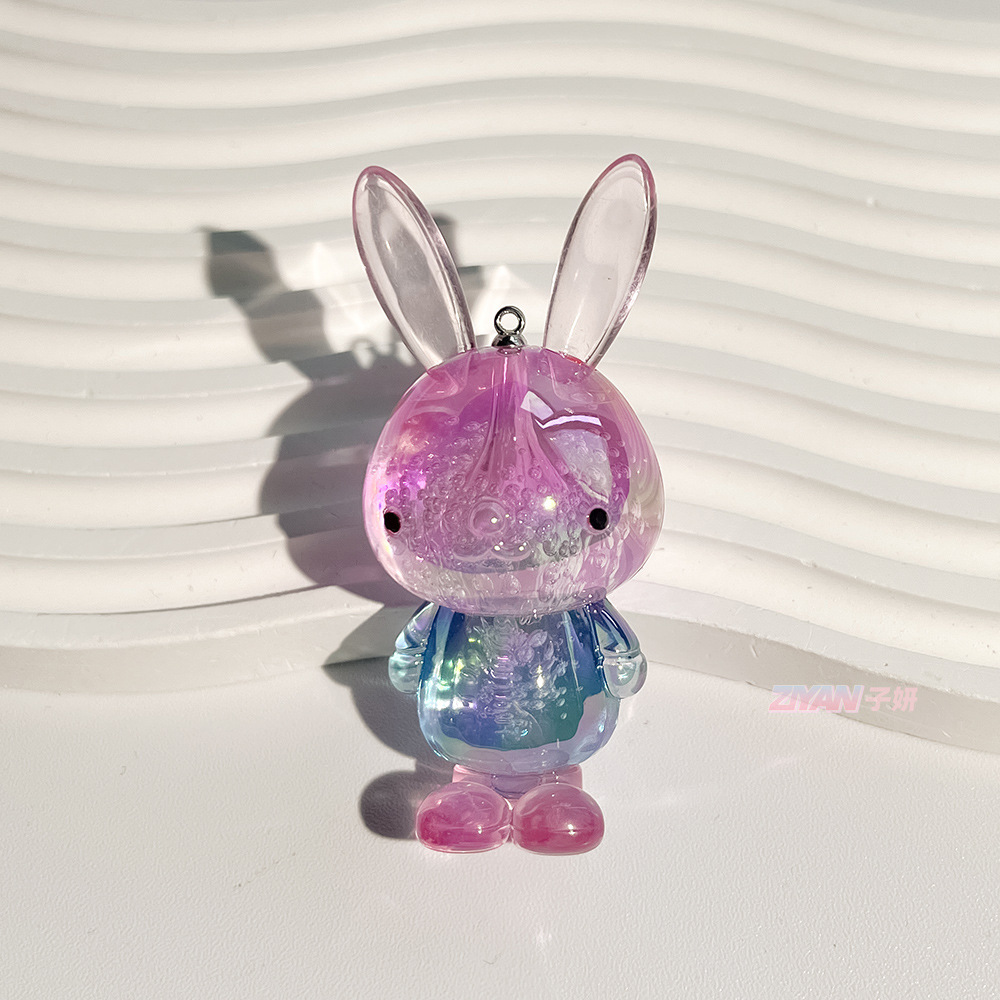 아크릴 거품 크리스탈 만화 귀여운 작은 토끼 그라디언트 DIY 열쇠 고리 가방 어린이 액세서리