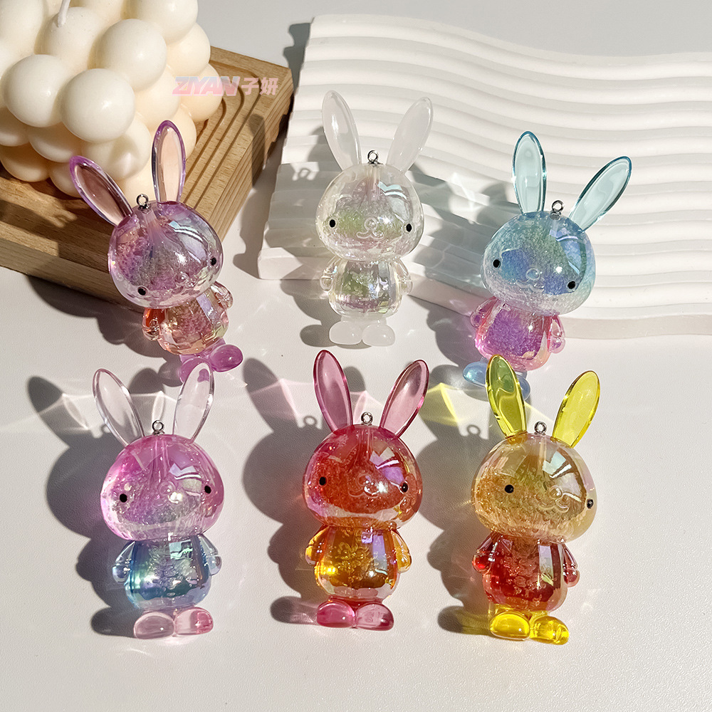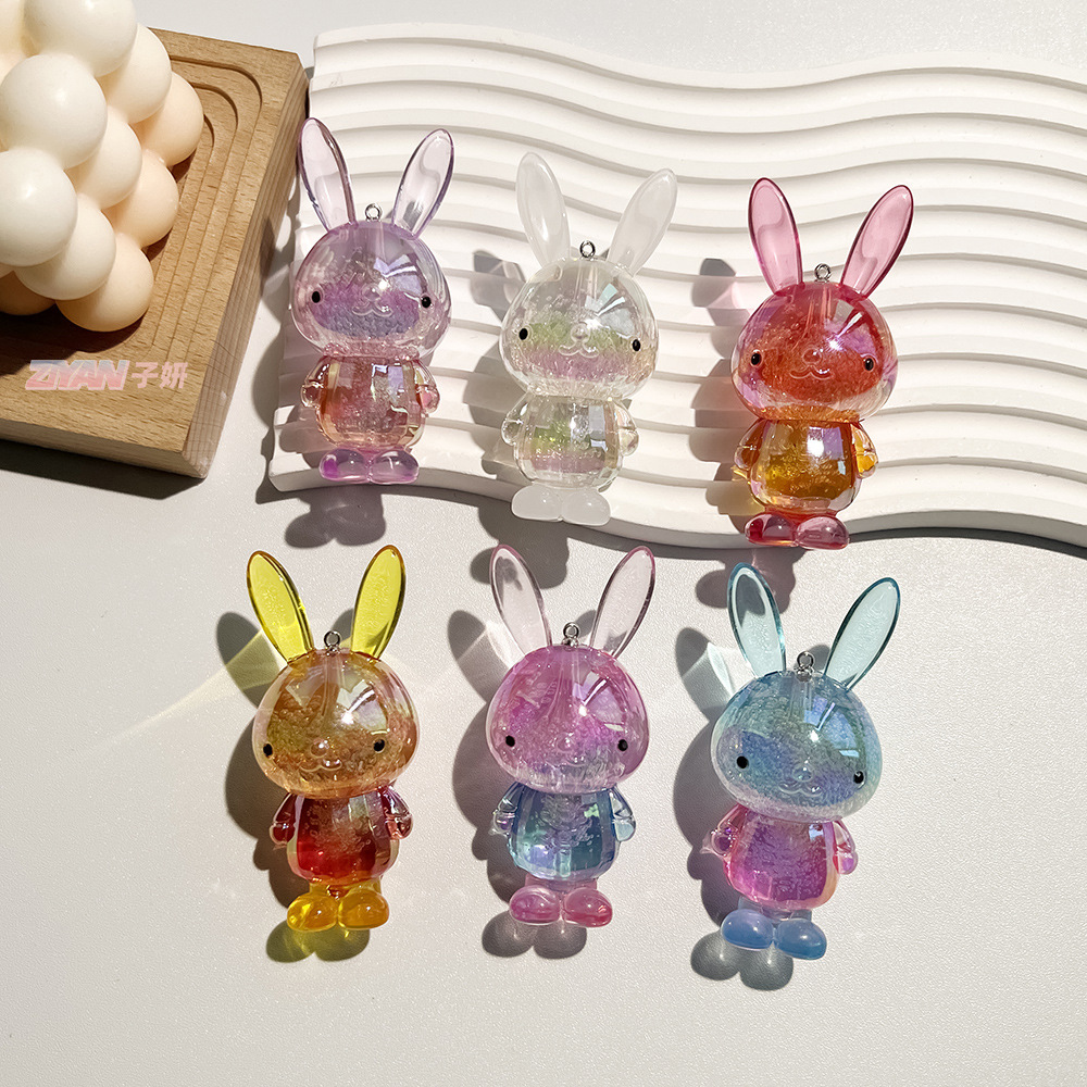 아크릴 거품 크리스탈 만화 귀여운 작은 토끼 그라디언트 DIY 열쇠 고리 가방 어린이 액세서리스토어 가기
