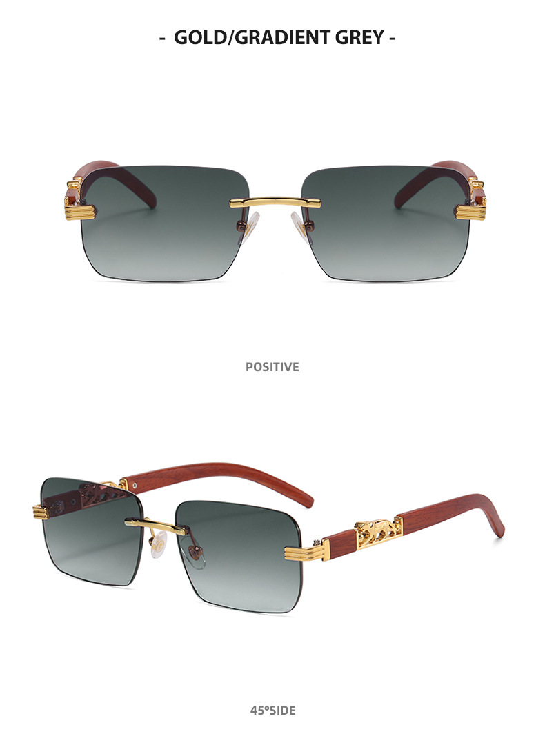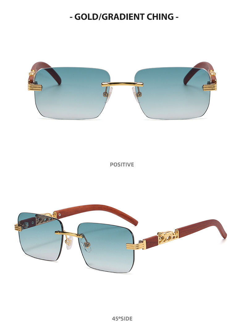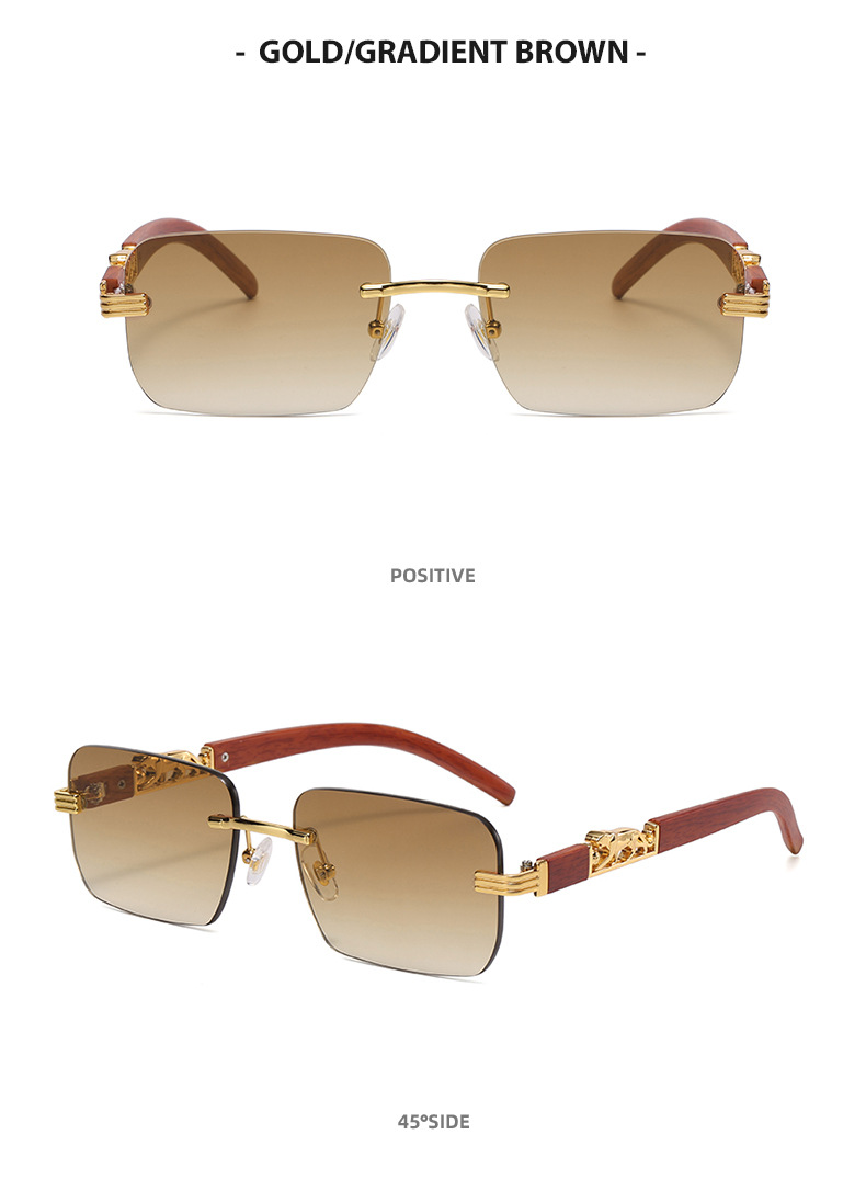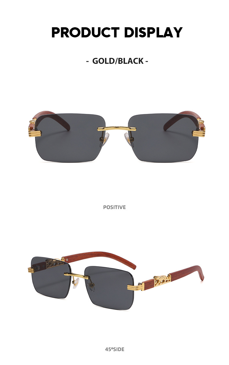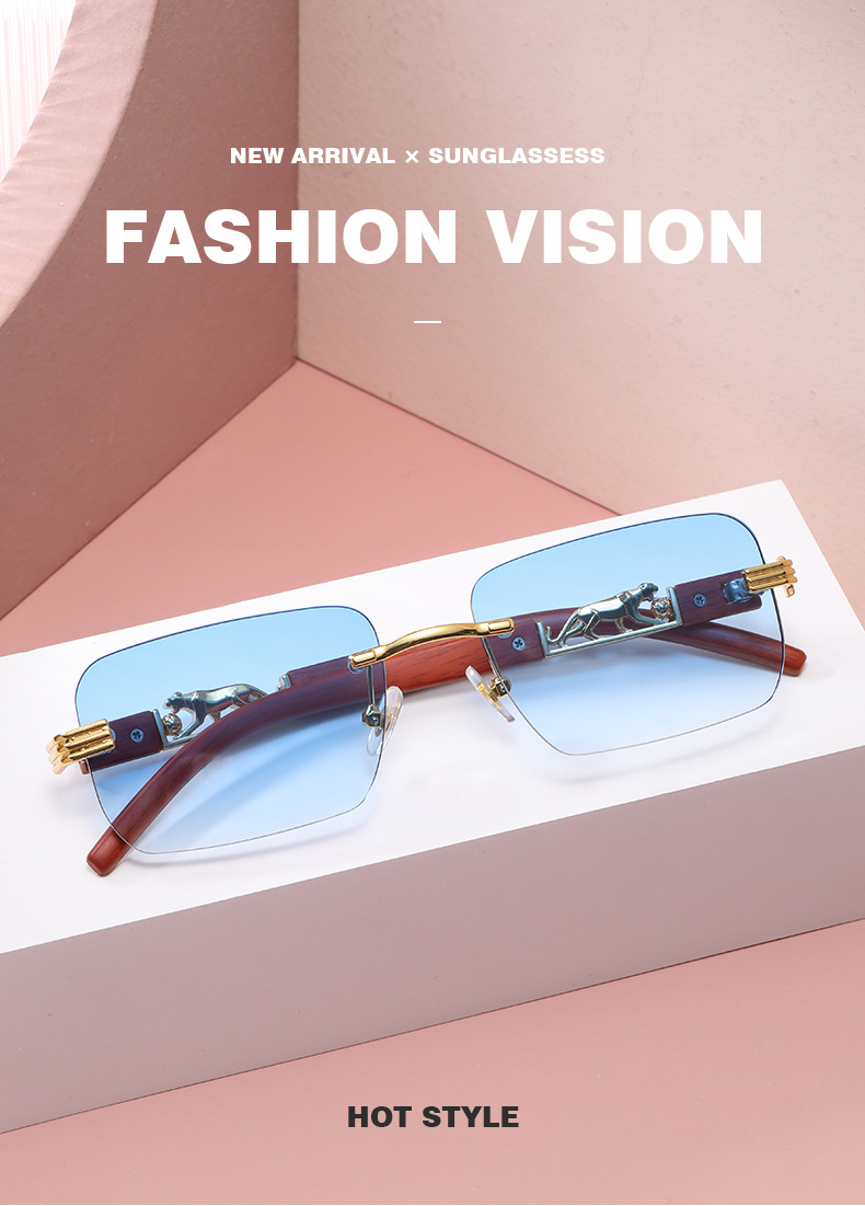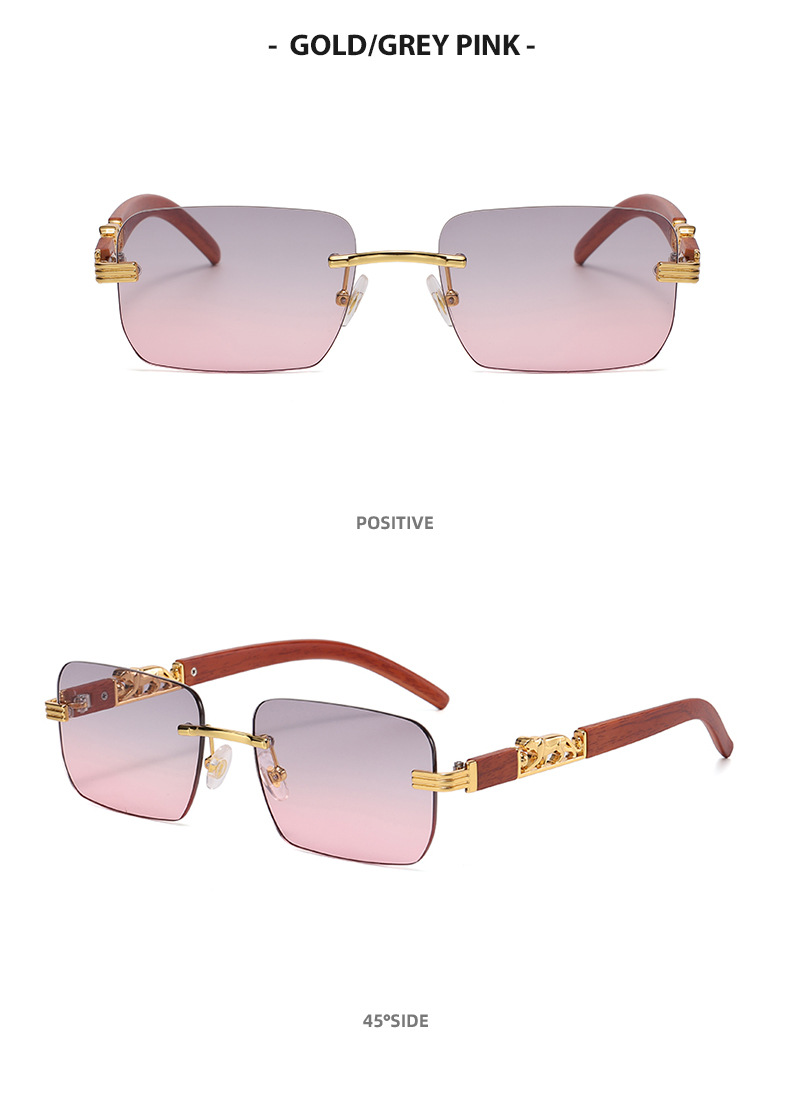 新款高档墨镜无边框时尚防晒瘦脸百搭木纹脚太阳镜工厂直销太阳镜
