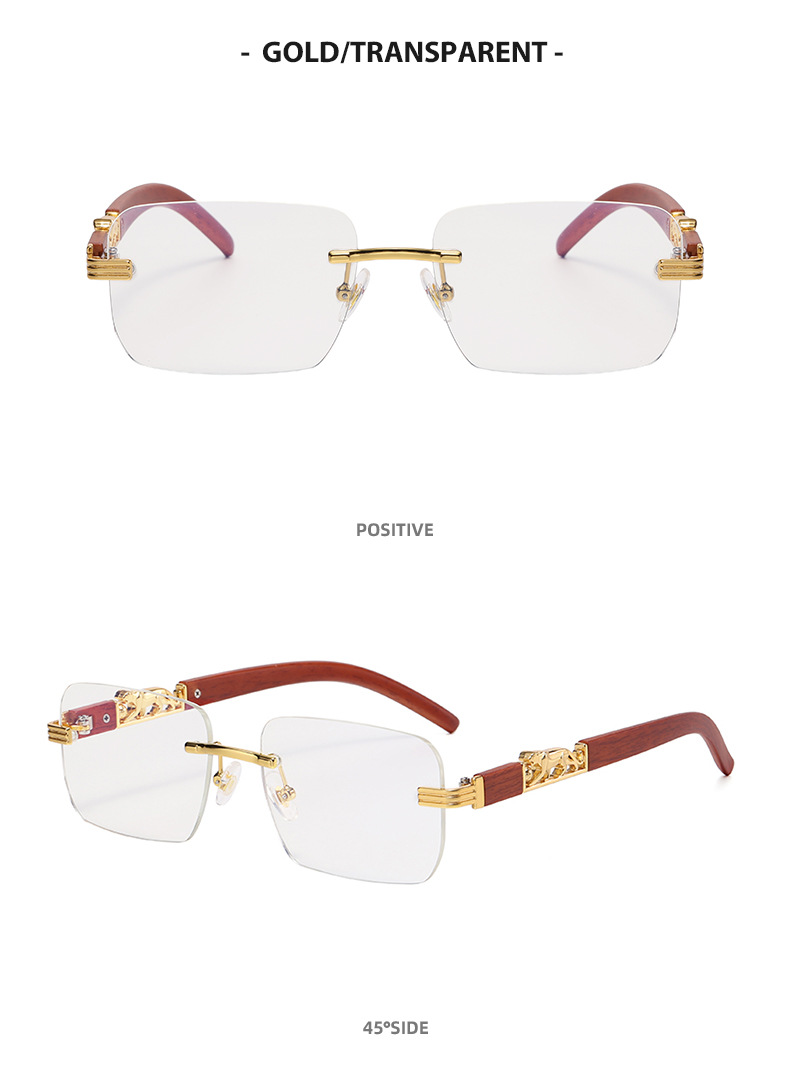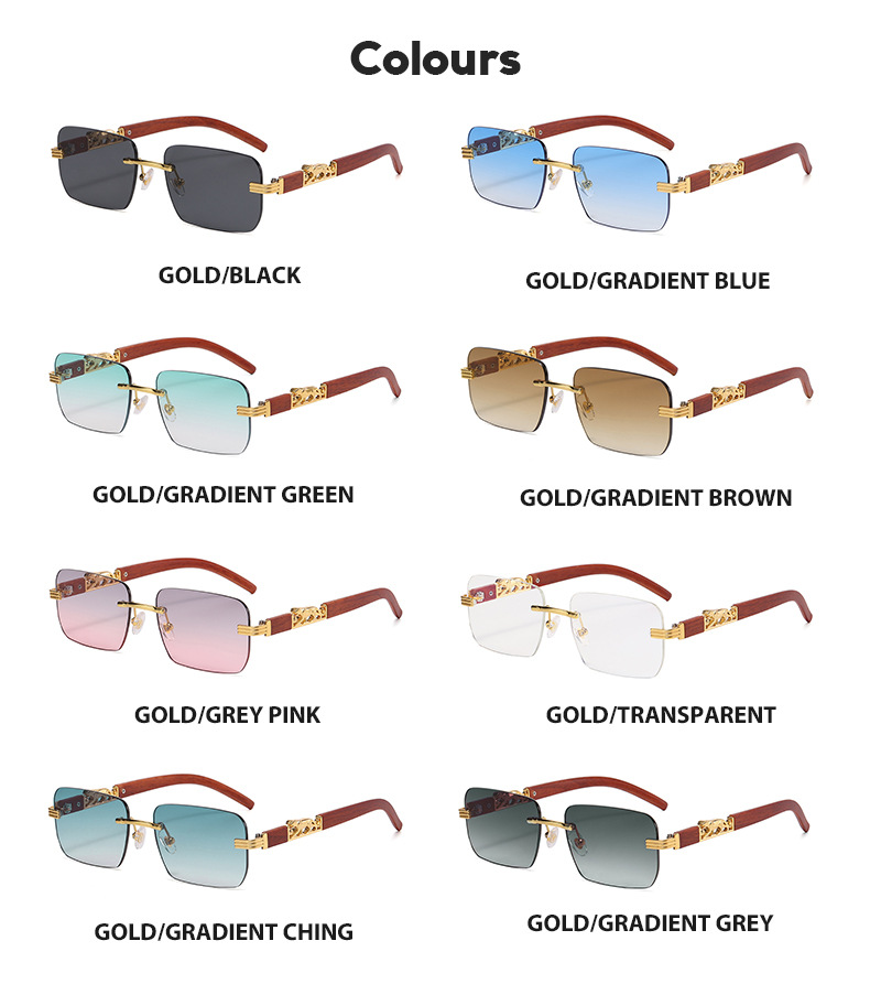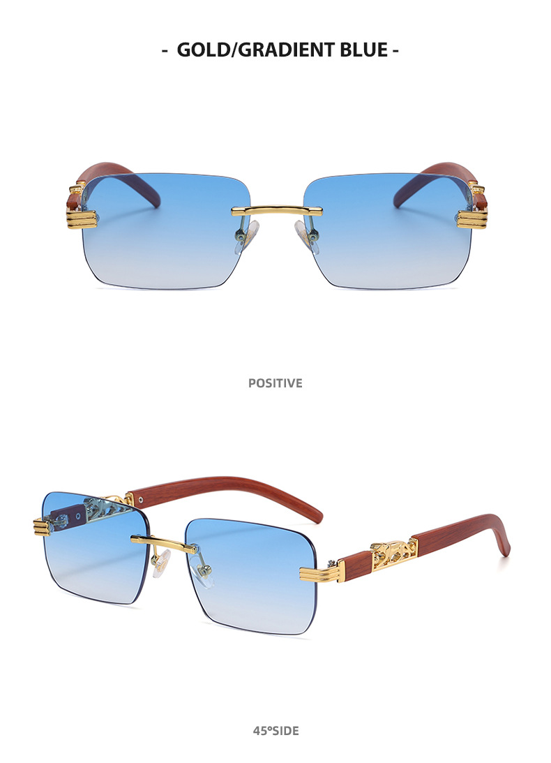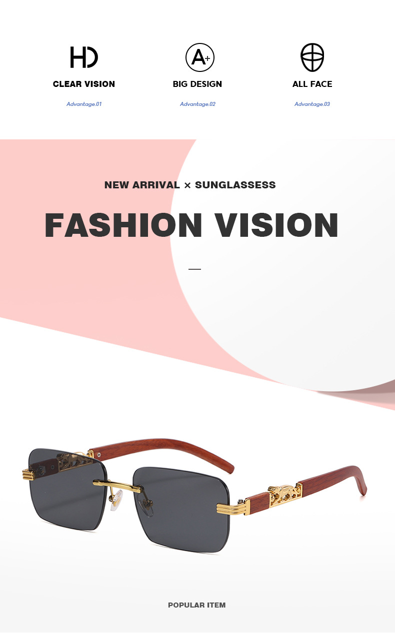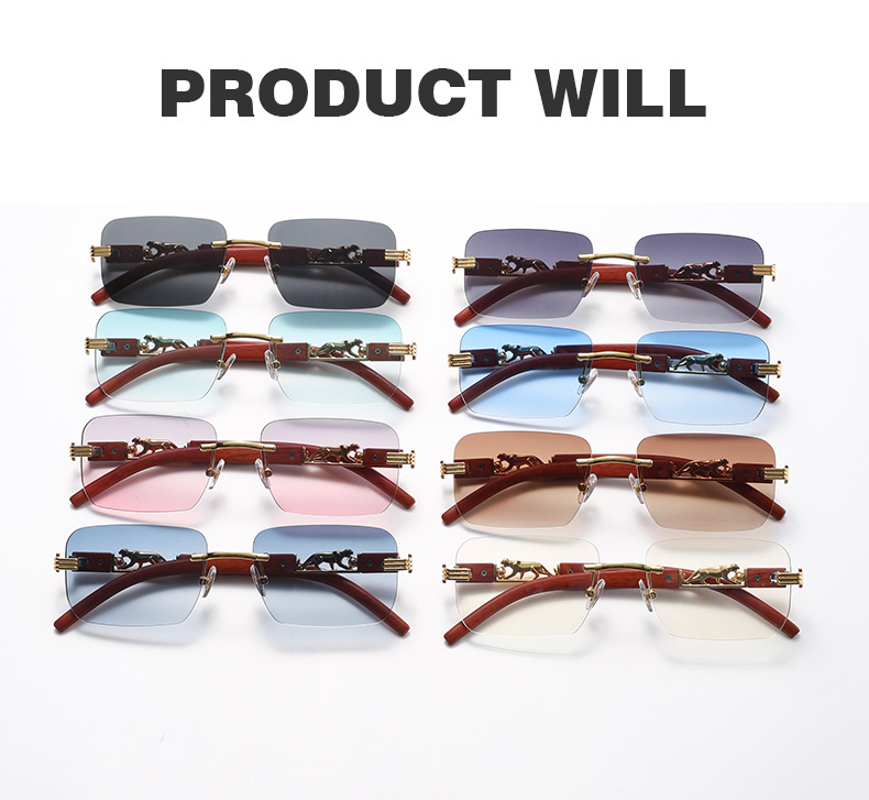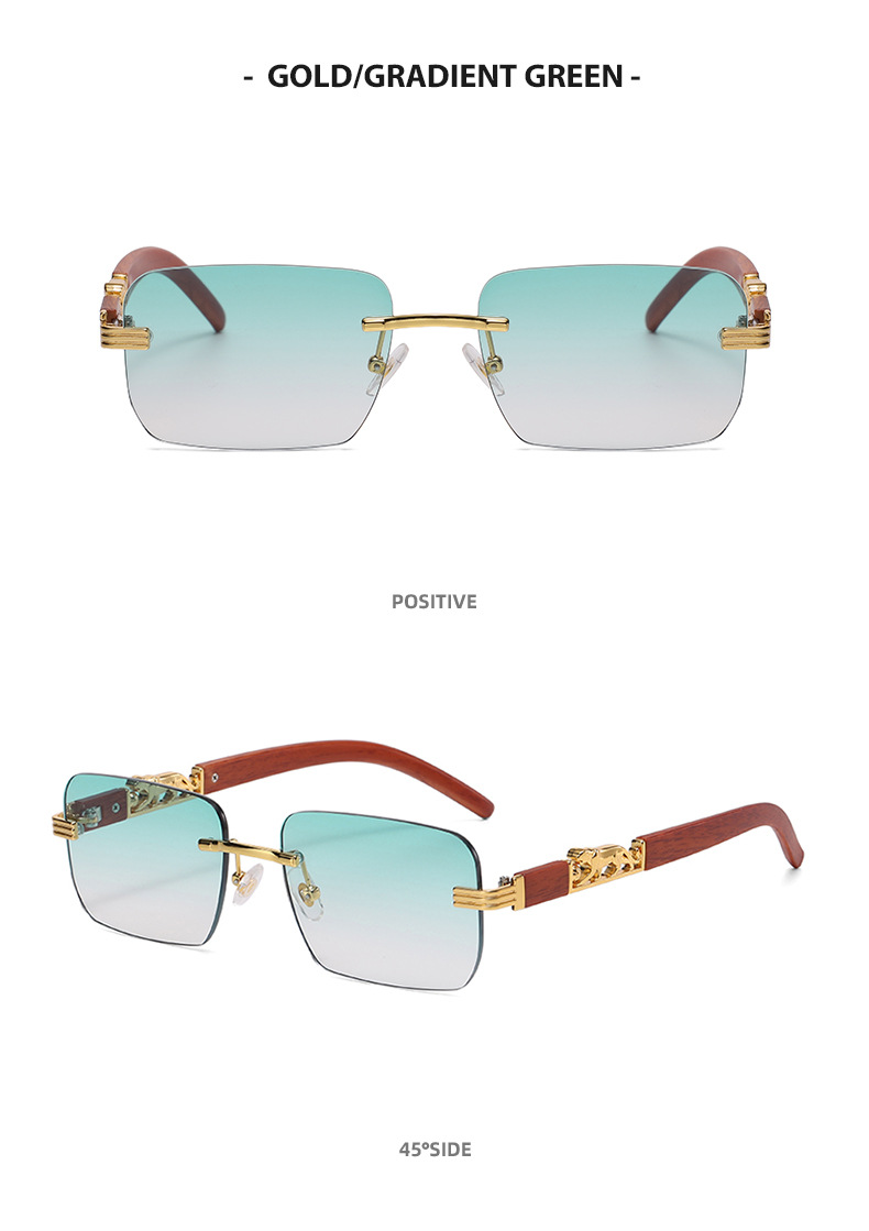 新款高档墨镜无边框时尚防晒瘦脸百搭木纹脚太阳镜工厂直销太阳镜
