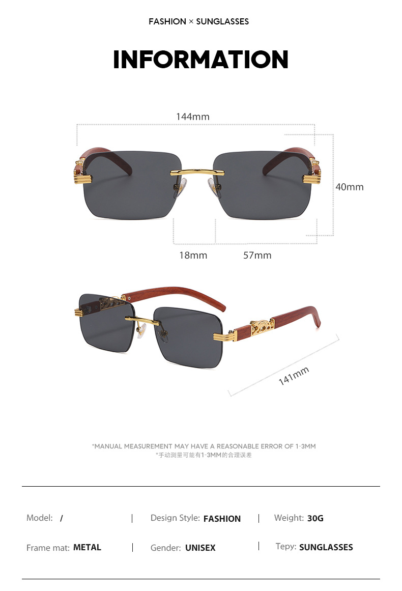 6020木纹豹子头太阳镜女 新款潮流设计无框男士太阳眼镜潮墨镜