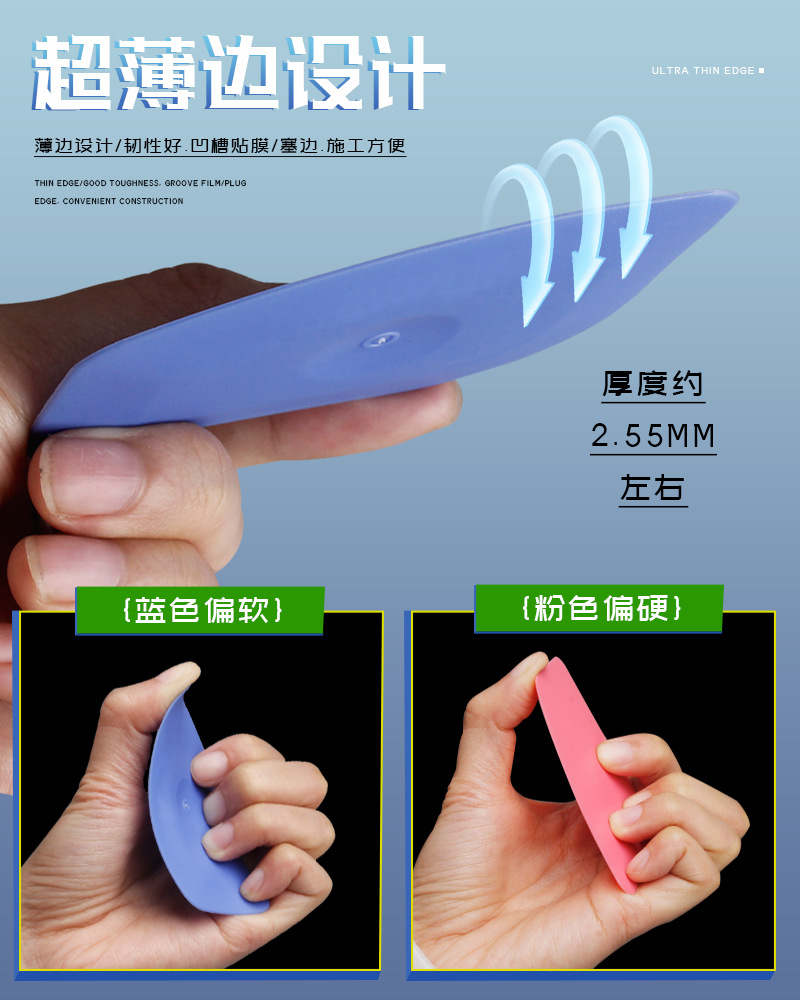 자동차 용품 색상 변경 필름 플러그 가장자리 접착제 제거 스크레이퍼 플러그 에지 블루 슈퍼 소프트 스크래핑 태양열 필름 접착제 제거 플라스틱 스크래핑스토어 가기