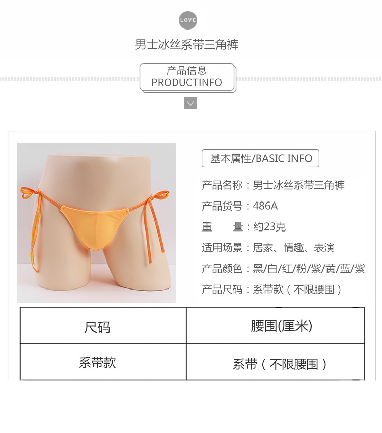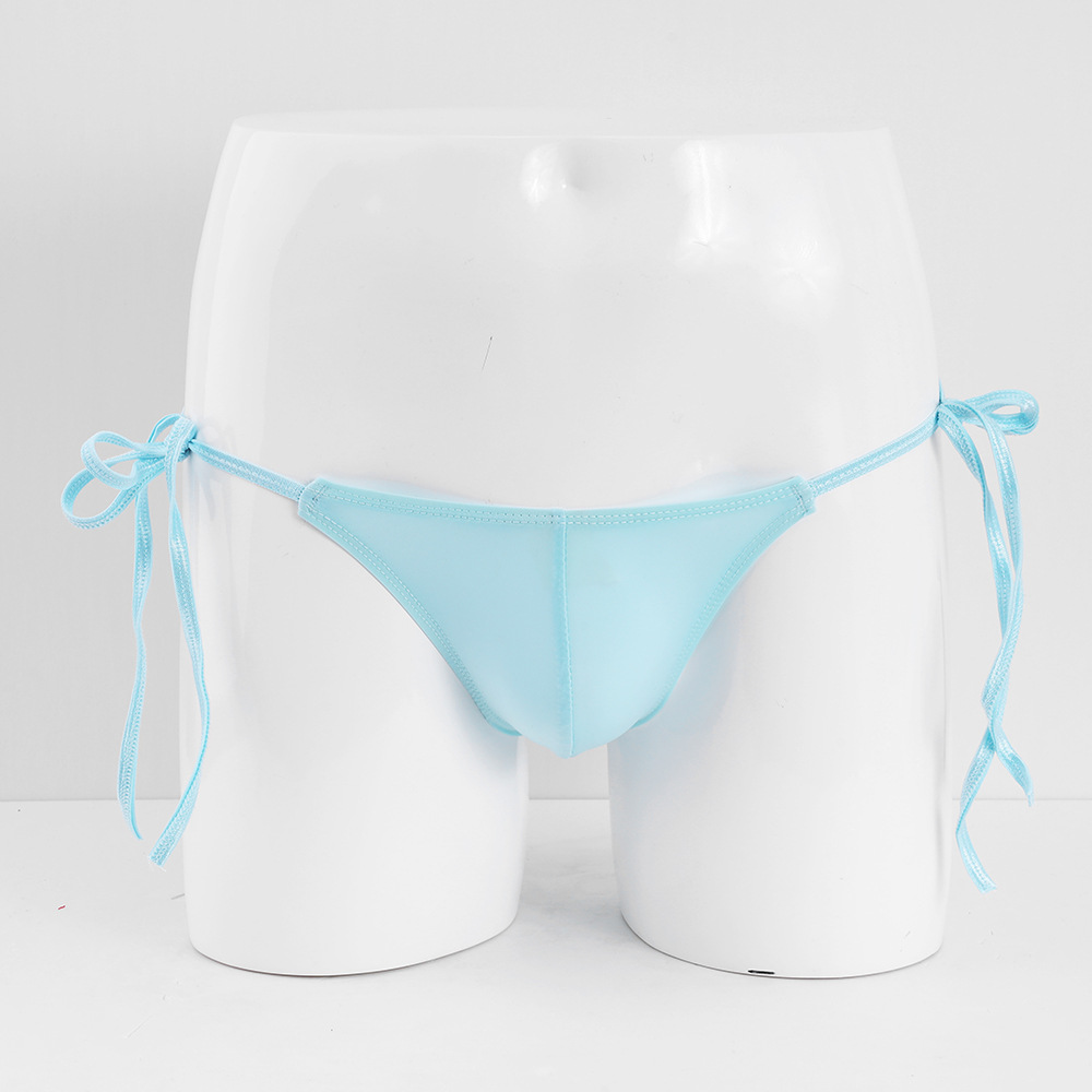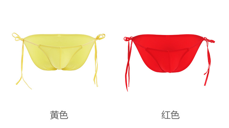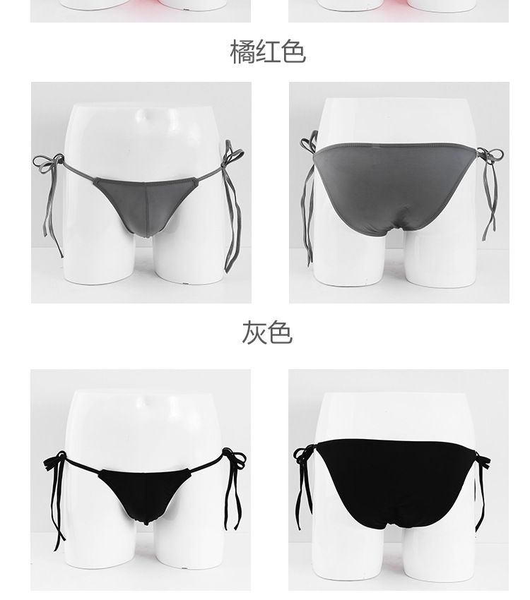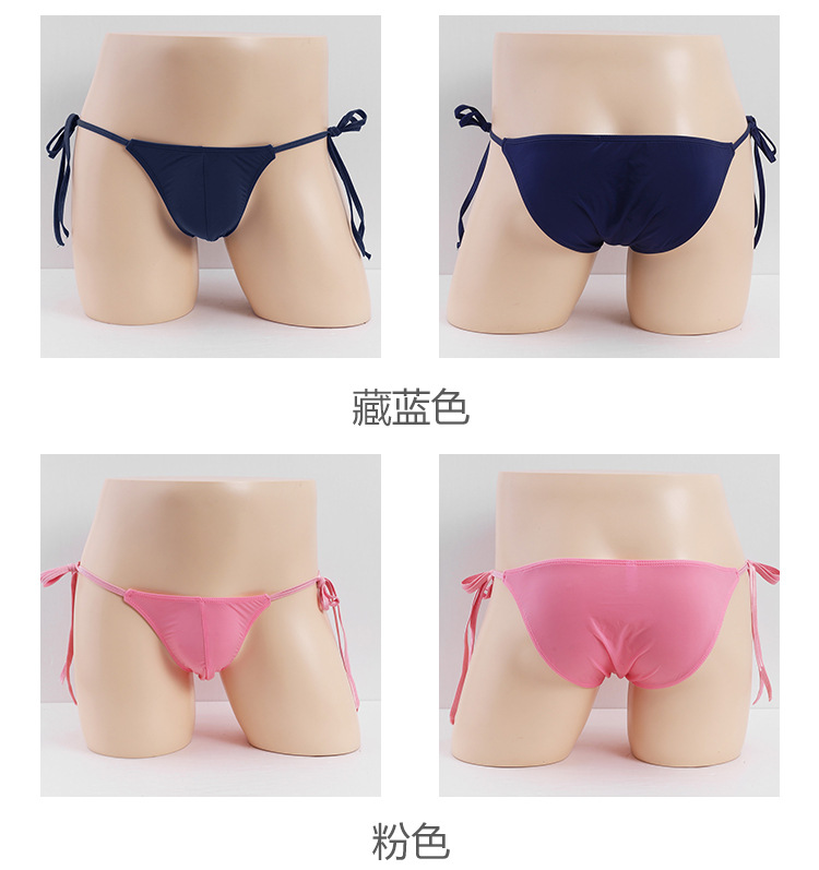 무제한 허리 타이 업 섹시한 남자 속옷 비키니 낮은 허리 스트레치 단색 아이스 실크 팬티 남성용스토어 가기