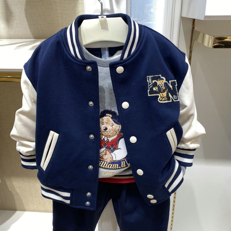 재고 2024 봄과 가을 새로운 더블 레이어 소년 야구 세트 소년 중 큰 아이 곰 카디건 재킷 공 세트 재킷스토어 가기