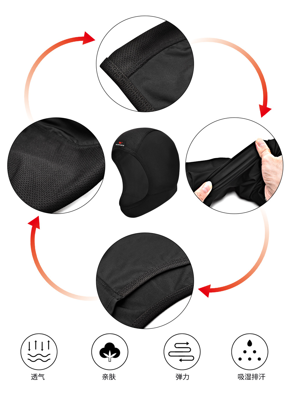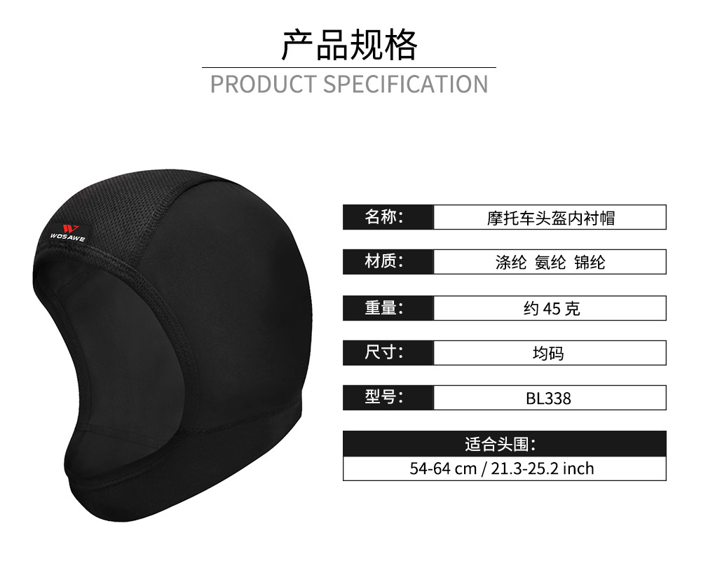 WOSAWE摩托车头盔内衬帽男士骑行赛车头盔内胆运动头套面罩