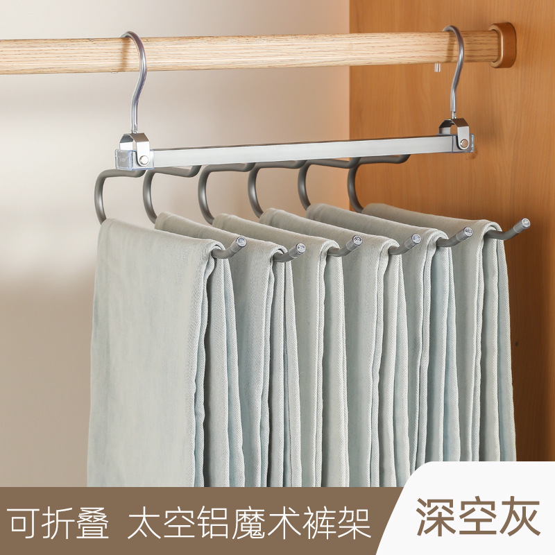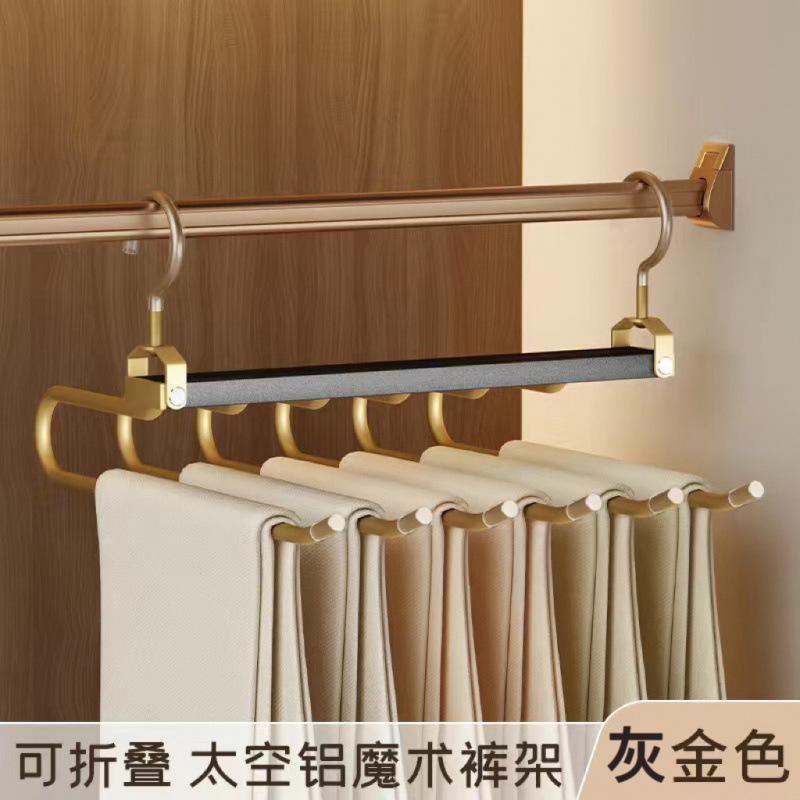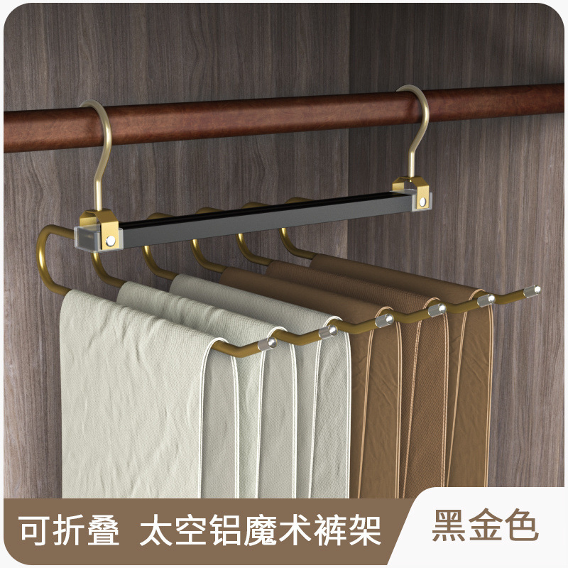 텔레스코픽 접이식 바지 랙 다기능 다층 바지 걸이 공간 절약형 가정용 원활한 매직 바지 클립 옷장 마감스토어 가기